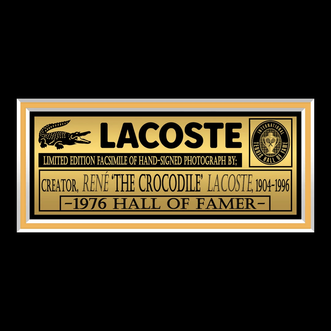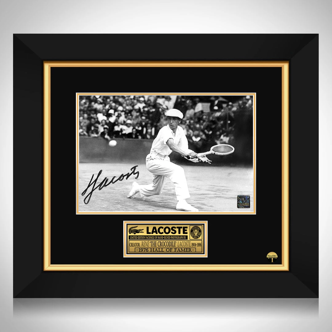 Pay homage to René Lacoste, with this gallery-framed, officially licensed, limited edition facsimile of the Hand-Signed photo, originally signed by René Lacoste, of which is strictly limited to 100 units Worldwide, and has been approved and numbered accordingly.