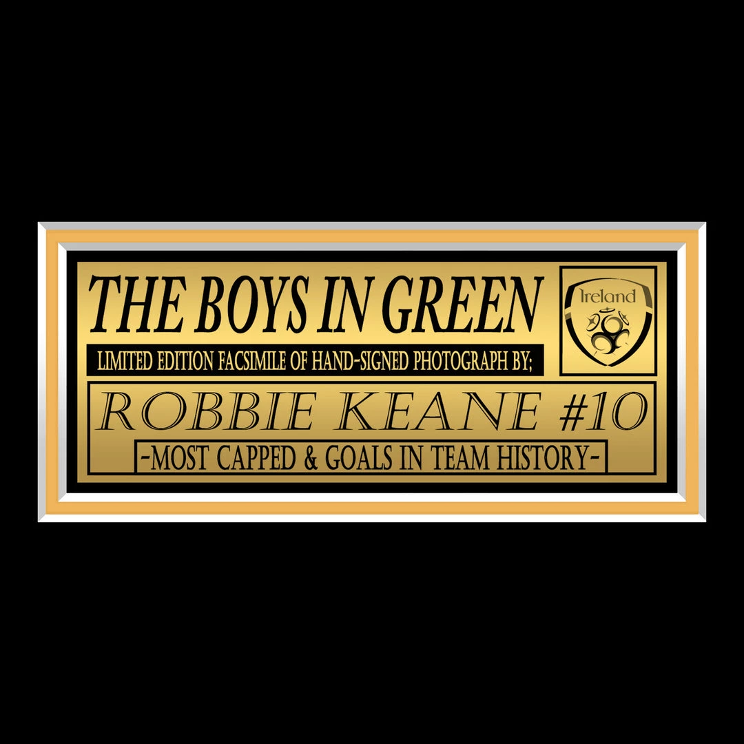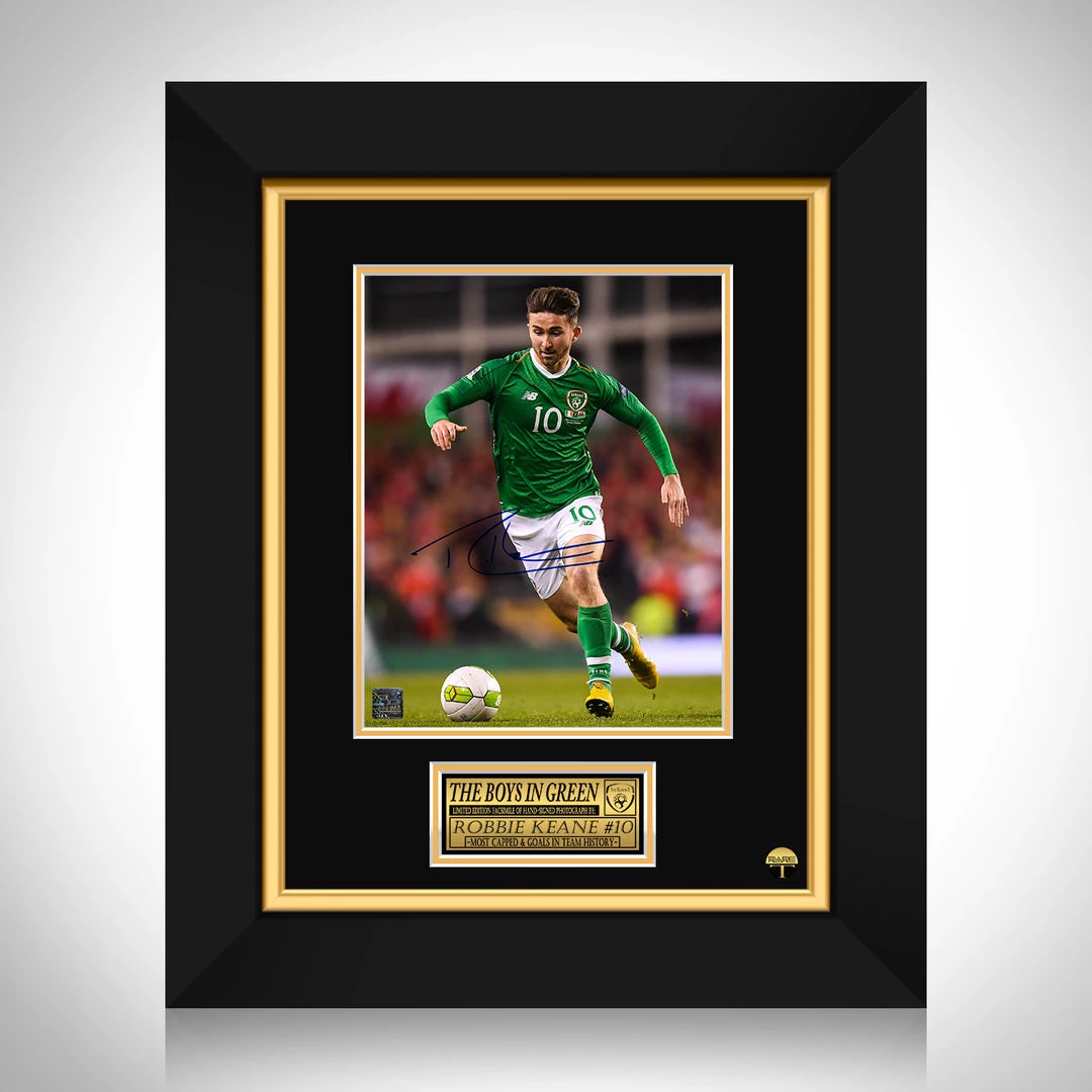 Pay homage to Robbie Keane , with this gallery-framed, officially licensed, limited edition facsimile of hand-signed photo, originally signed by Robbie Keane , of which is strictly limited to 100 units Worldwide, and has been approved and numbered accordingly.