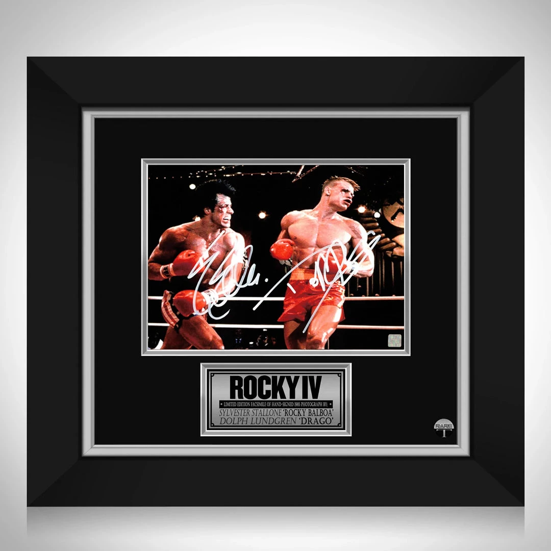 Pay homage to the inspirational Rocky Balboa and one of the most iconic and influential movie franchises of all time, Rocky, with this gallery-framed, officially licensed, limited edition facsimile of hand-signed Rocky vs Drago movie photo, originally signed by legendary actors Sylvester Stallone and Dolph Lundgren, of which is strictly limited to 100 units Worldwide, and has been approved and numbered accordingly.