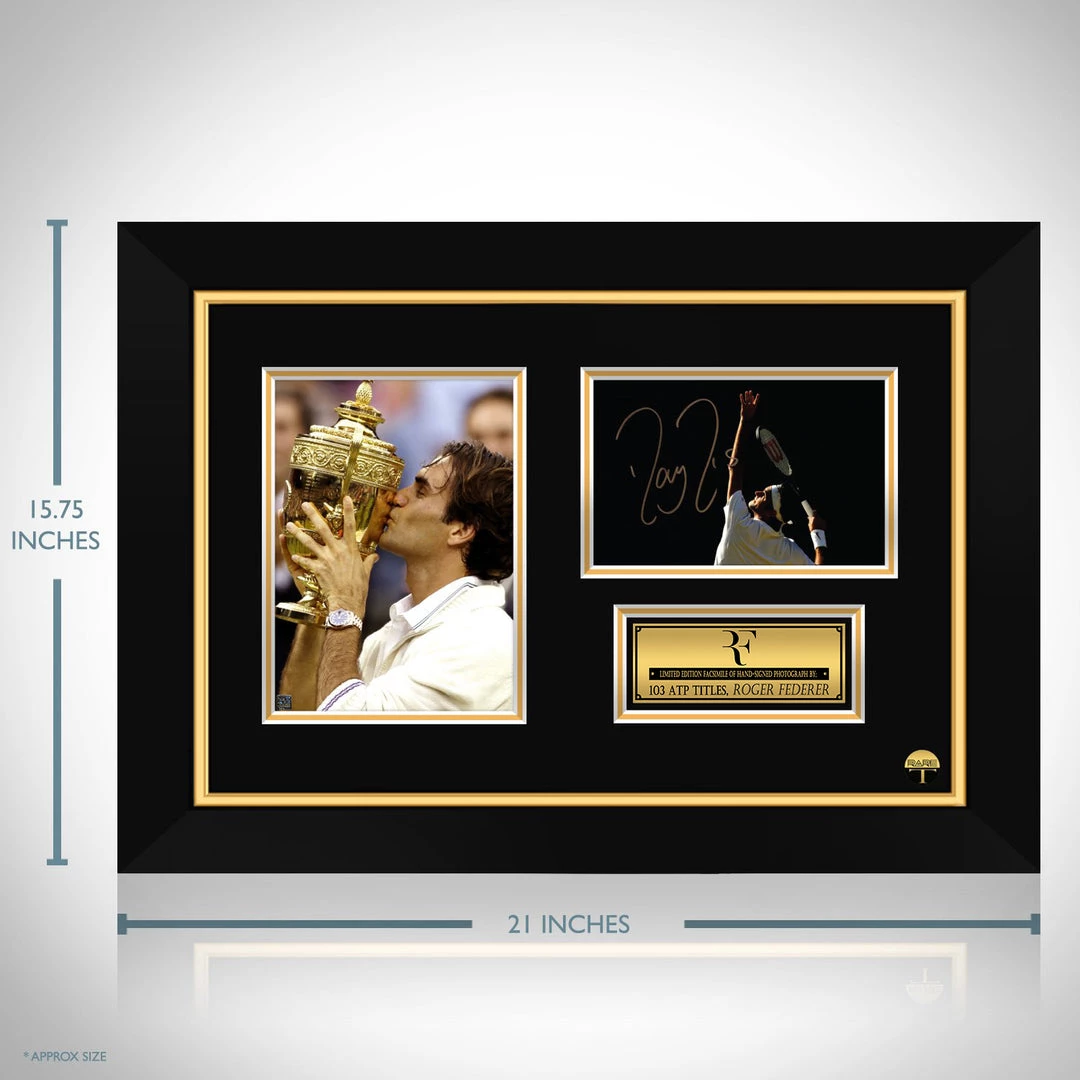 Pay homage to the greatest tennis player of all time, the living legend Roger Federer, with this gallery-framed, officially licensed, limited edition facsimile of the Hand-Signed photo, originally signed by Roger Federer, of which is strictly limited to 100 units Worldwide, and has been approved and numbered accordingly.