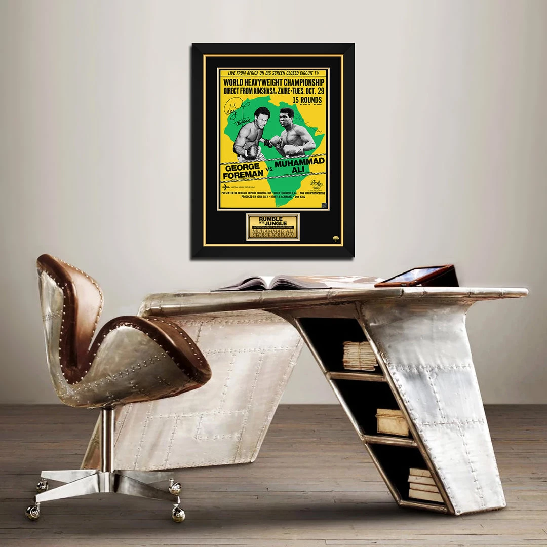 — Collectible Muhammad Ali & George Foreman facsimile of hand-signed mini poster custom frame.