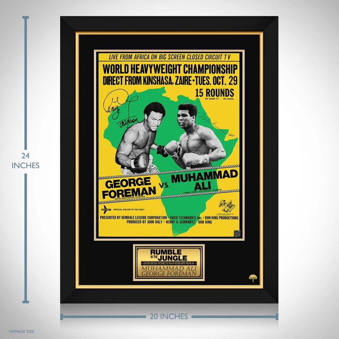 Pay homage to Muhammad Ali & George Foreman, with this gallery-framed, officially licensed, limited edition facsimile of hand-signed movie mini poster, originally signed by Muhammad Ali & George Foreman , of which is strictly limited to 100 units Worldwide, and has been approved and numbered accordingly.