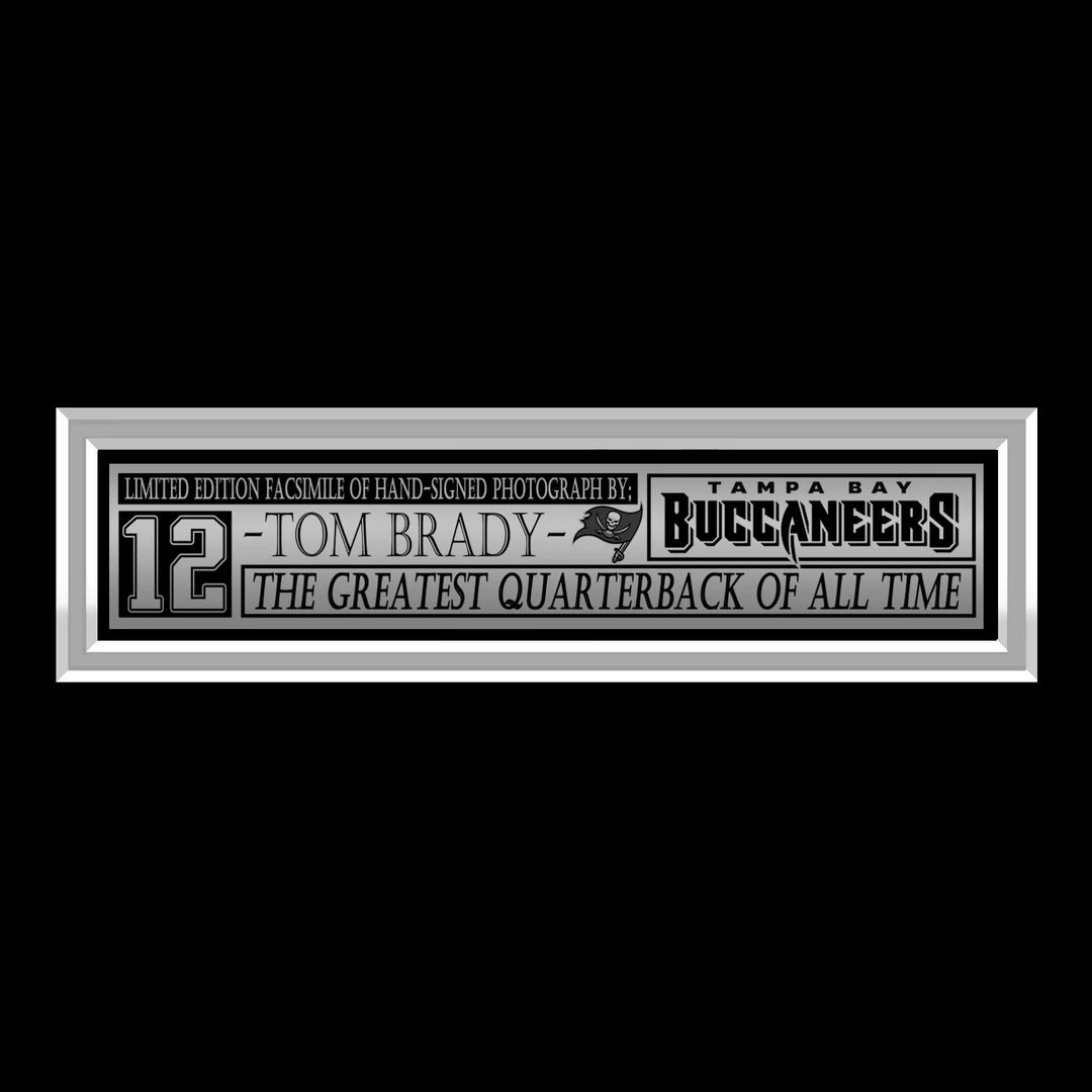 Pay homage to the Greatest Quarterback of all time, Tom Brady and Tampa Bay Buccaneers with this gallery-framed, officially licensed, limited edition facsimile of hand-signed photo, originally signed by Tom Brady himself, of which is strictly limited to 100 units Worldwide, and has been approved and numbered accordingly.
