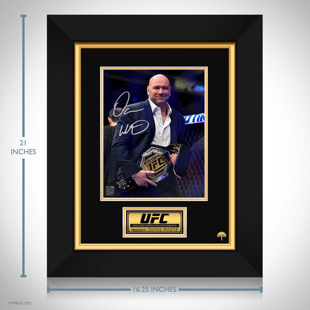 Pay homage to the UFC, with this gallery-framed, officially licensed, limited edition facsimile of hand-signed photo, originally signed by Dana White, of which is strictly limited to 100 units Worldwide, and has been approved and numbered accordingly.
