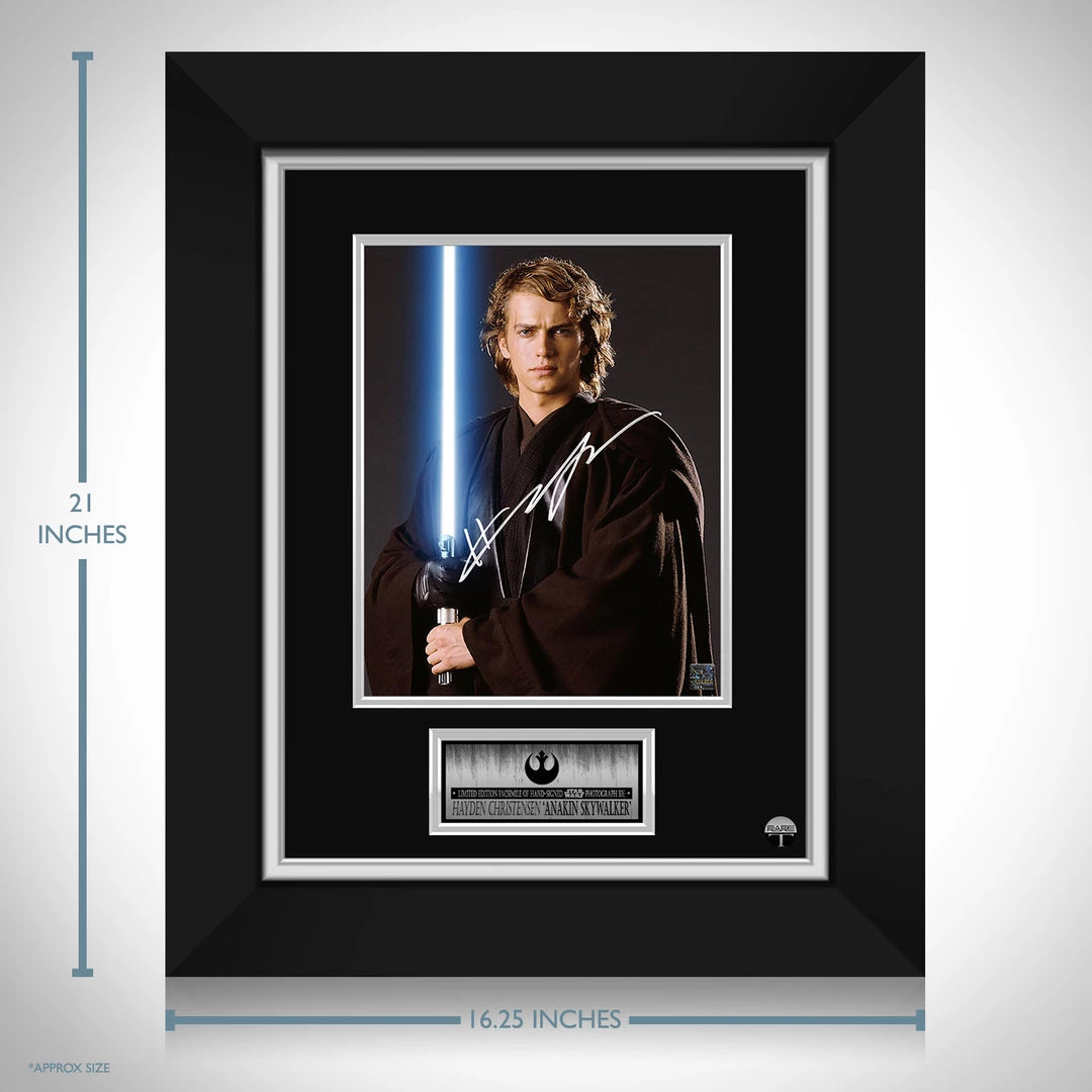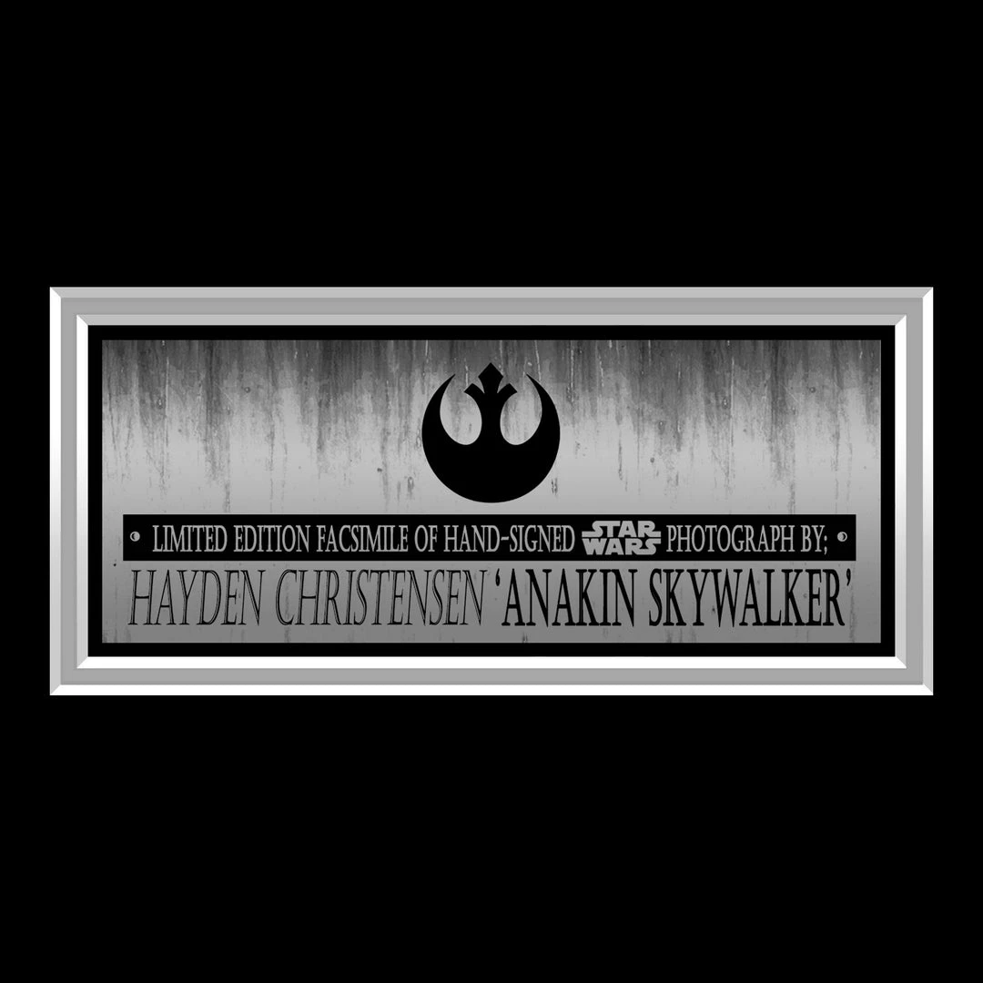 Pay homage to Anakin Skywalker with this gallery-framed, officially licensed, limited edition facsimile of hand-signed photo, originally signed by Hayden Christensen, of which is strictly limited to 100 units Worldwide, and has been approved and numbered accordingly.