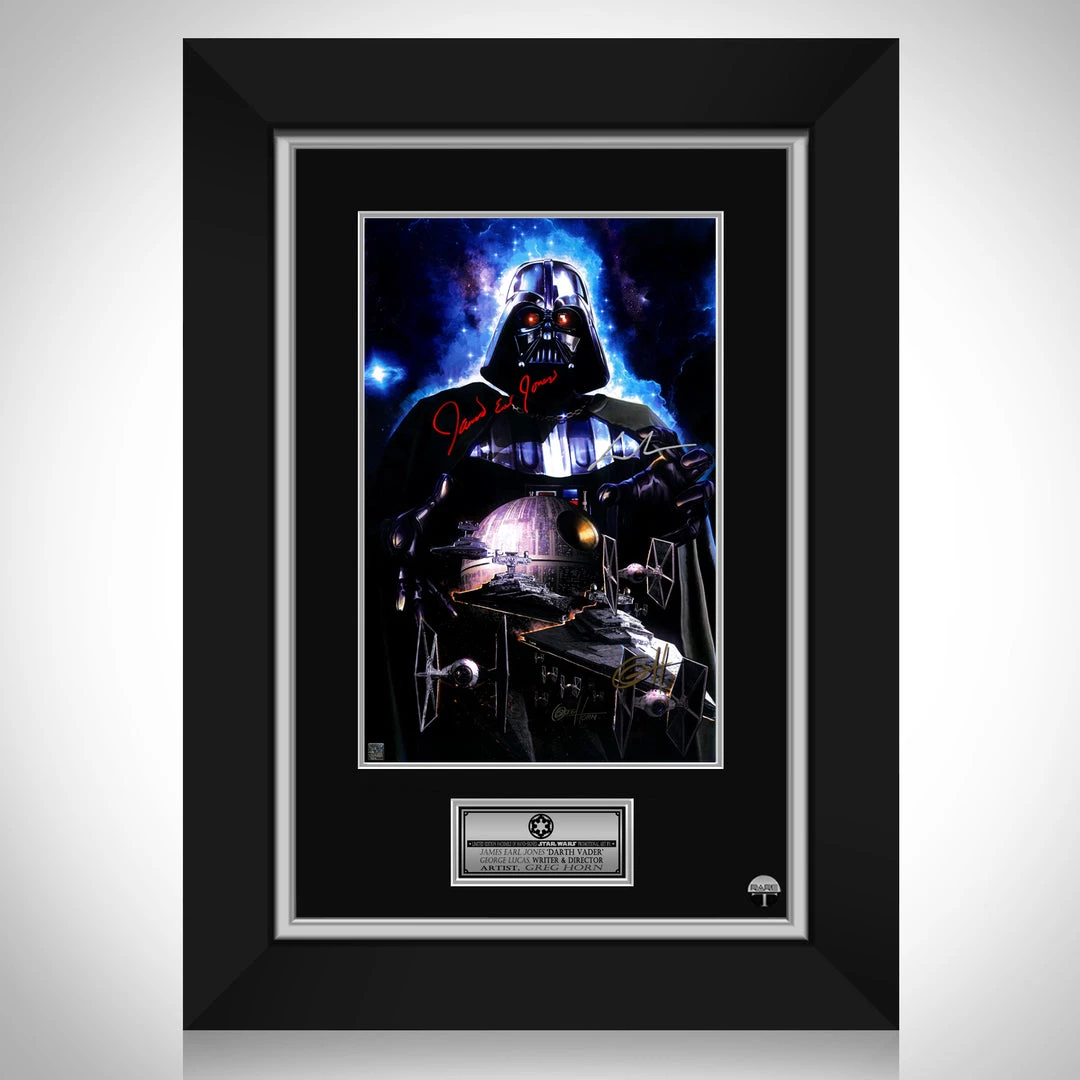 Pay homage to Star Wars and Darth Vader with this gallery-framed, officially licensed, limited edition facsimile of the Hand-Signed art work, originally signed by writer & director George Lucas, actor James Earl Jones & artist Greg Horn of which is strictly limited to 100 units Worldwide, and has been approved and numbered accordingly.