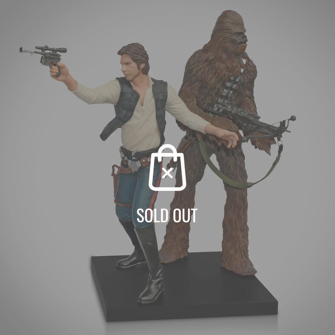 This Limited Edition Han Solo and Chewbacca is a rare Vintage Statue. Featuring the epic team up of two of the most popular characters of all time, HAN SOLO & CHEWBACCA. Jumping straight out of Episode IV: A New Hope, the inseparable smuggling duo stands side by side ready to take on the forces of the evil galactic Empire. Literally from different worlds (Corellia and Kashyyyk), Han Solo and Chewbacca formed an unlikely yet lasting friendship that would resonate with fans from their first appearance.Ready to take on anything the Empire might throw at them, the pair of space scoundrels advance in turn as they point their weapons at hordes of ineffective Stormtroopers.