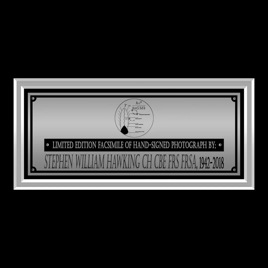 Pay homage to Stephen Hawkins with this gallery-framed, officially licensed, limited edition facsimile of hand-signed photo, originally signed by Stephen Hawkins, of which is strictly limited to 100 units Worldwide, and has been approved and numbered accordingly.