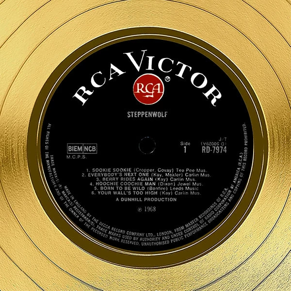 Pay homage to one of the most iconic Canadian-American rock band of all time Steppenwolf , with this gallery-framed, authentic RCA Records fully licensed facsimile of the official Hand-Signed 24K Gold LP Record and LP Cover self-titled Originally signed by John Kay, Michael Monarch, Goldy McJohn & Jerry Edmonton , of which is strictly limited to 100 units Worldwide and has been approved and numbered accordingly.