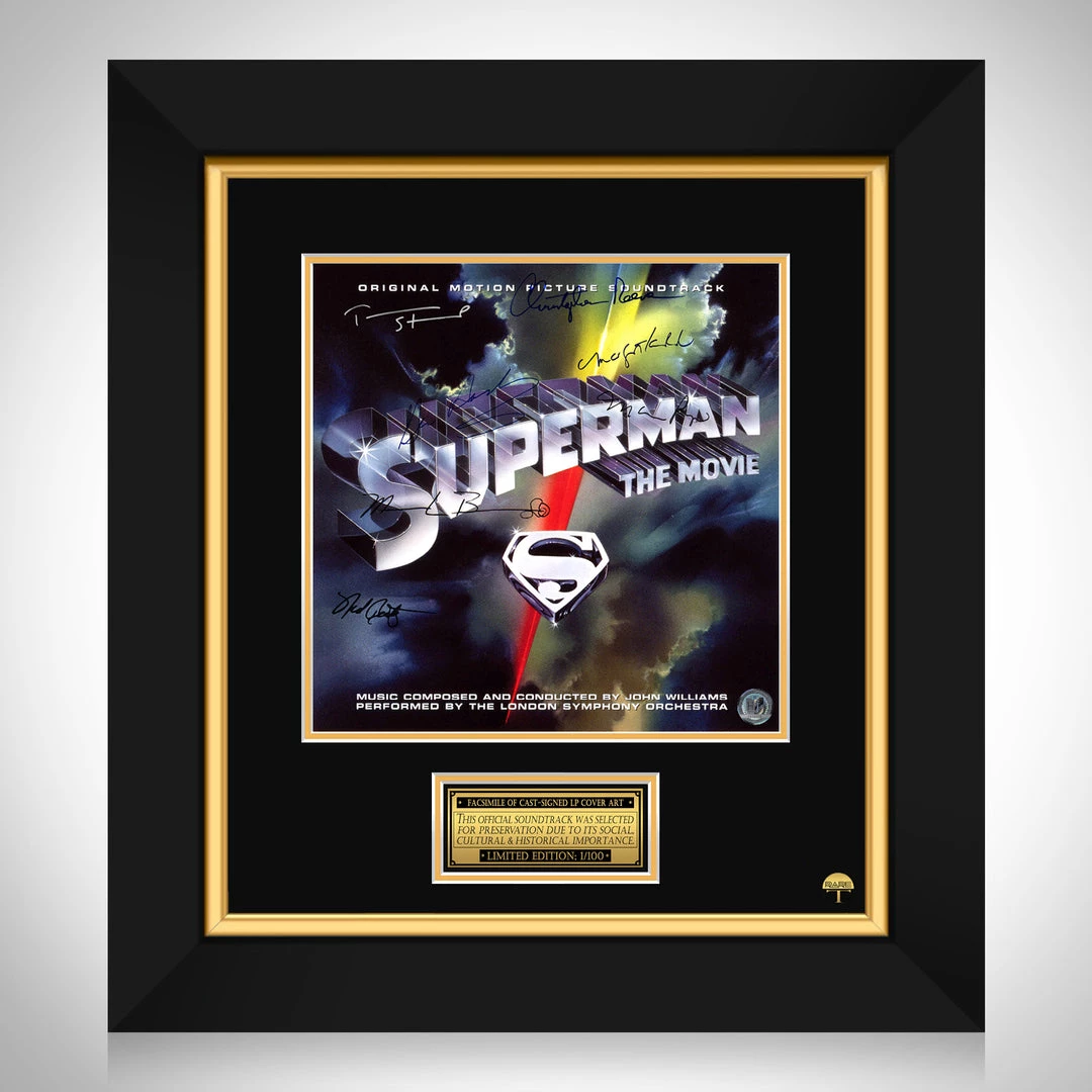 — Limited Edition Facsimile of the Hand-Signed LP Cover originally signed by Mario Puzo, Marlon Brando, Gene Hackman, Christopher Reeve, Ned Beaty, Margot Kidder & Terrence Stamp