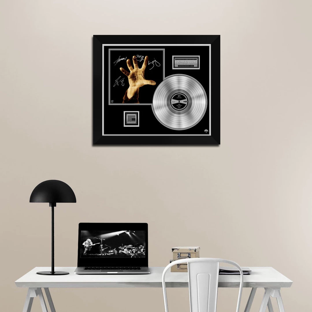 The Platinum Plated LP and album cover facsimile are both professionally mounted in the highest quality triple matted wood shadow box frame with metallic fillet trim and finished with protective glass to keep it looking pristine. The customized descriptive metallic plaque, in addition to the detailed finishing and openings, add to the elegant and sophisticated gallery quality look.