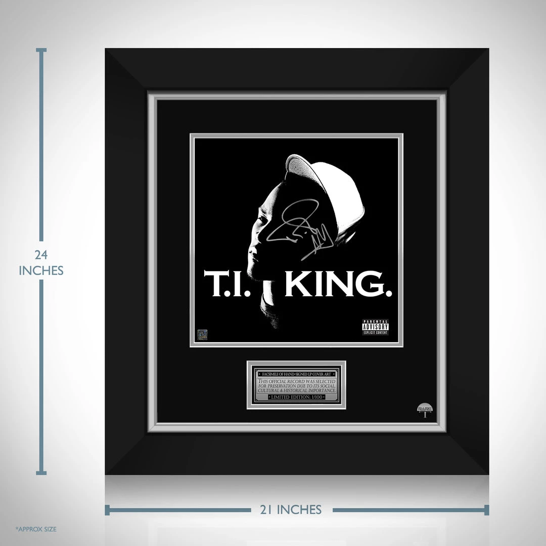 Pay homage to one of the most iconic American rapper of all time, T.I. , with this gallery-framed, officially licensed, limited edition facsimile of the Hand-Signed King LP Cover originally signed by Clifford Joseph Harris Jr , of which is strictly limited to 100 units Worldwide, and has been approved and numbered accordingly.