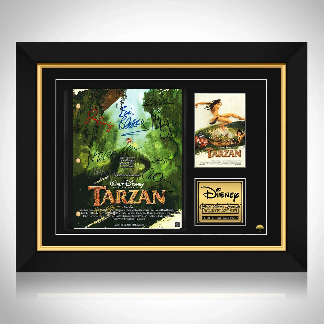 Pay homage to Tarzan , with this Walt Disney Studios fully licensed facsimile of the official signed movie Transcript , originally signed by actors ony Goldwyn, Minnie Driver, Glenn Close, Alex D.Linz, Rosie O’Donnell, Brian Blessed, Nigel Hawthorne, Lance Henriksen, Wayne Knight, Jim Cummings, Frank Welker, Phil Proctor & Rodger Bumpass , of which is strictly limited to 100 units Worldwide and has been approved and numbered accordingly.