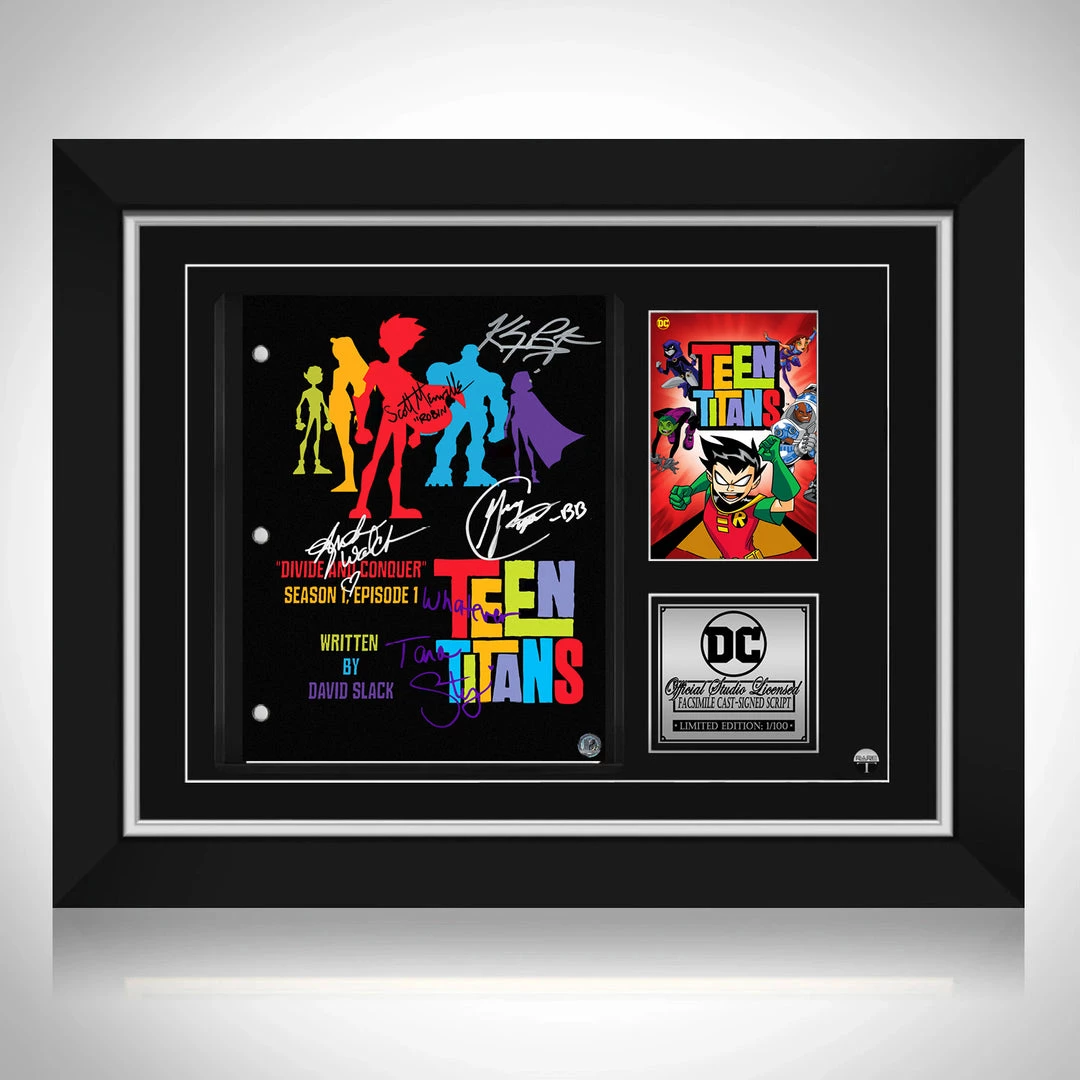 Pay homage to Teen Titan , with this DC fully licensed facsimile of the official signed TV Series script, originally signed by actors Hynden Walch, Greg Cipes, Scott Menville, Khary Payton & Tara Strong , of which is strictly limited to 100 units Worldwide and has been approved and numbered accordingly.