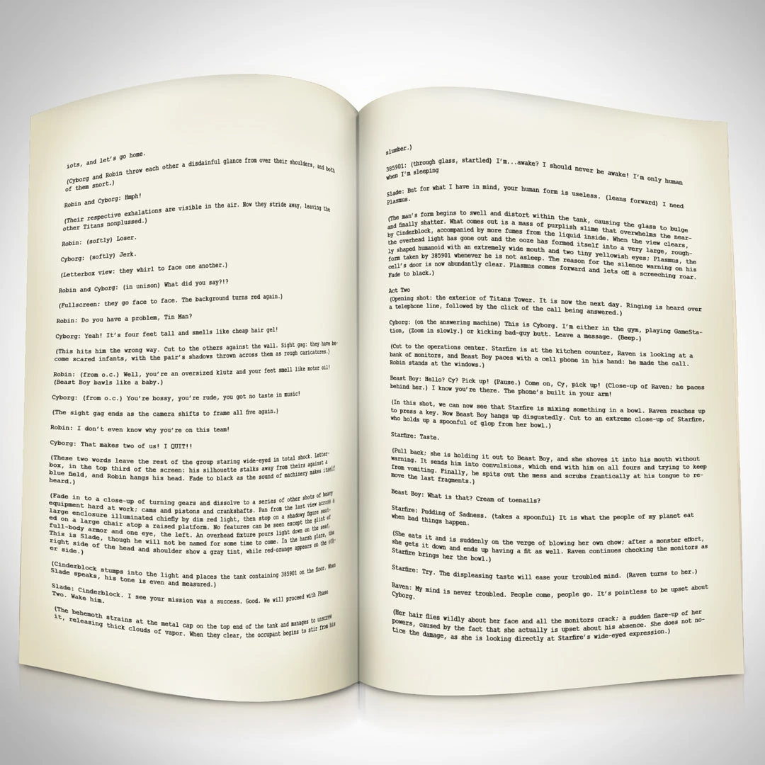 — Collector Grade Proprietary Exclusive VELVET TOUCH water/scratch resistant cover.— Collectible Facsimile of Original Hand-Signed Teen Titan TV Series Script Custom Frame.
