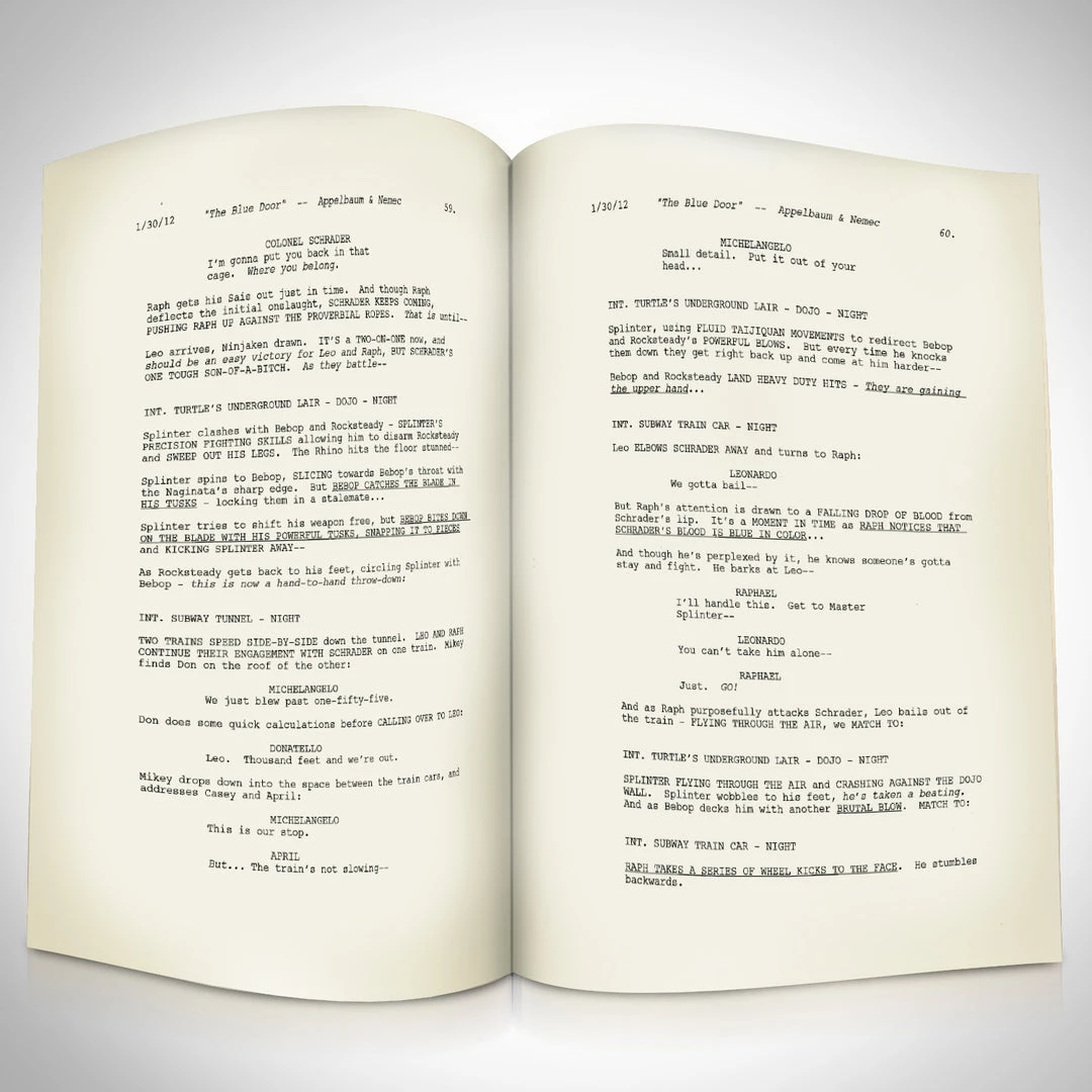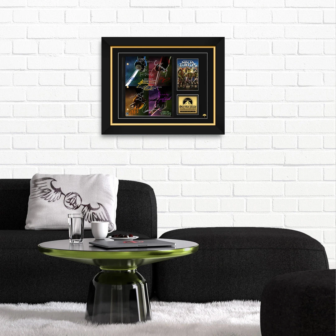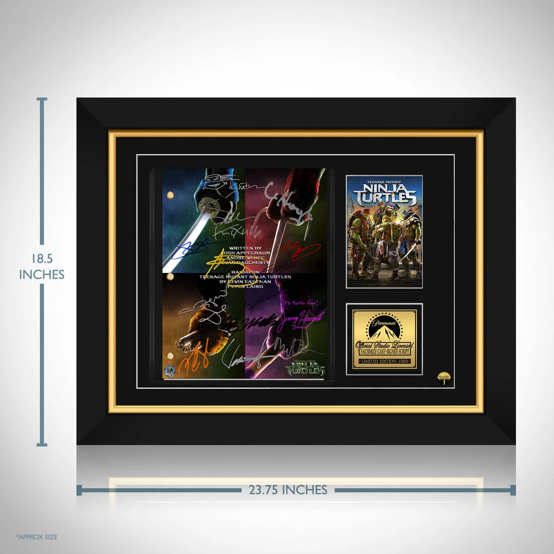 — Collector Grade Proprietary Exclusive VELVET TOUCH water/scratch resistant cover.— Collectible Facsimile of Original Hand-Signed Teenage Mutant Ninja Turtle 2014 movie Script Custom Frame.