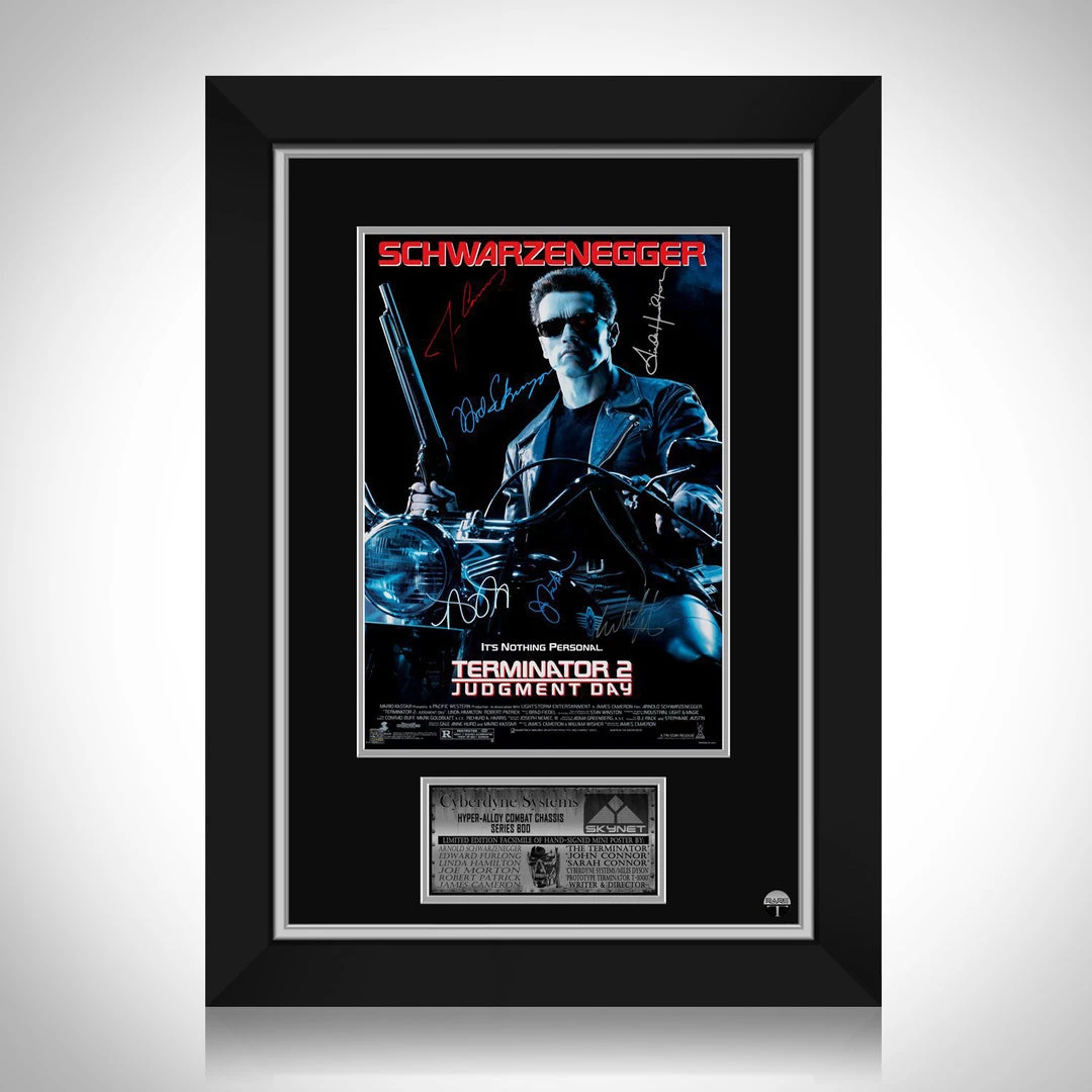 Pay homage to one of the most iconic films of all time, Terminator 2Â , with this gallery-framed, officially licensed, limited edition facsimile of hand-signed movie mini poster, originally signed by Arnold Schwarzenegger, Edward Furlong, Linda Hamilton, Joe Morton, Robert Patrick & legendary director James Cameron., of which is strictly limited to 100 units Worldwide, and has been approved and numbered accordingly.