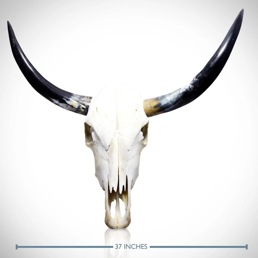 This piece of outstanding cruelty-free taxidermy is an Authentic Texas Longhorn Skull. At an impressive 37 inches, and originating from Central Texas, it was mounted by professionals with a wire mount for easy hanging. It’s the perfect addition to your original and prestigious decor.