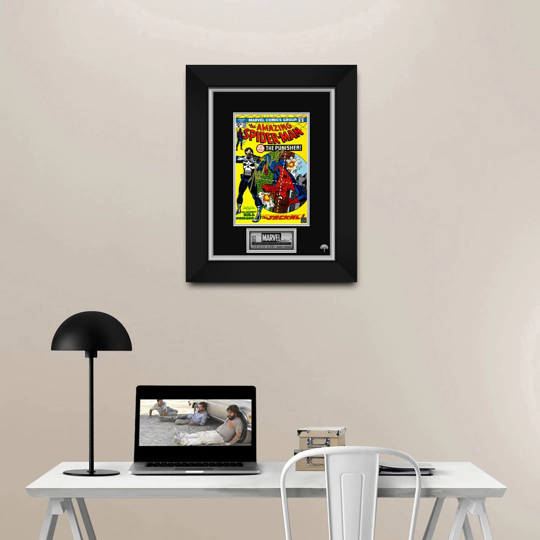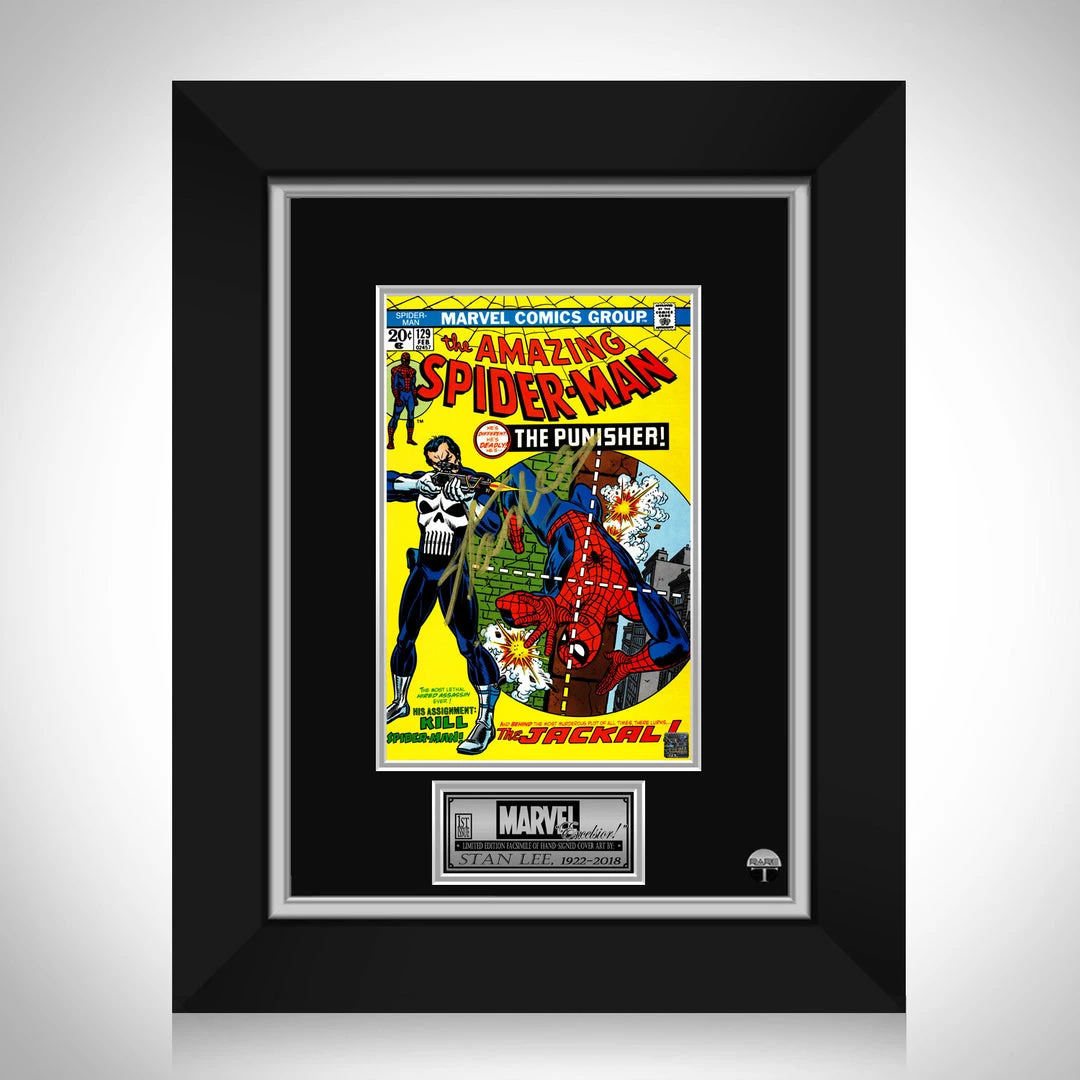 Pay homage to two of the most iconic franchises of all time, Spider-Man & The Punisher with this gallery-framed, officially licensed, limited edition facsimile of hand-signed The Amazing Spider-Man #129 Comic Book Cover Art, originally signed by Marvel Co-Founder & former executive producer of all Marvel Movies. the legendary, late great Stan Lee, of which is strictly limited to 100 units Worldwide, and has been approved and numbered accordingly.