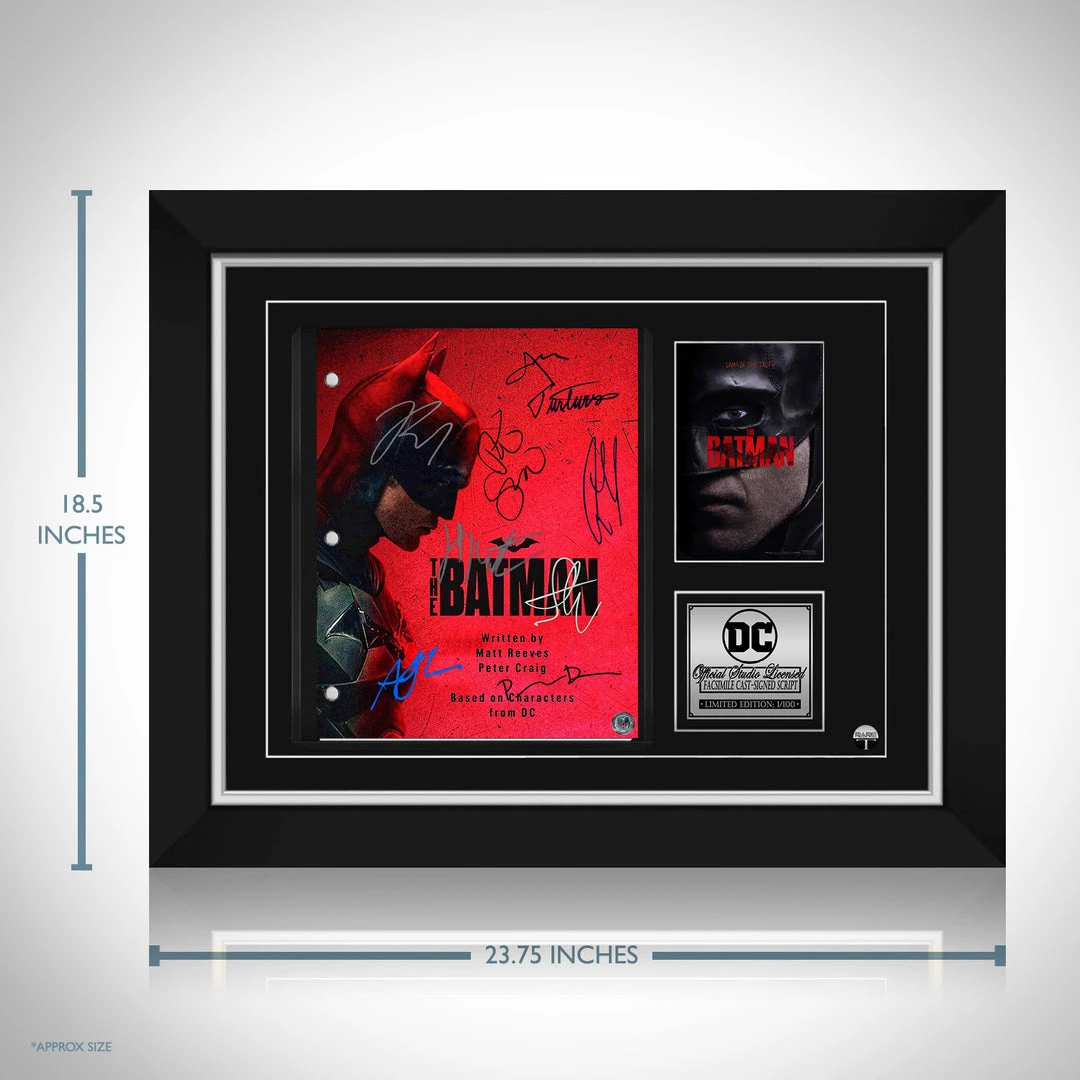 Pay homage to The Batman 2022 , with this DC Films fully licensed facsimile of the official signed movie transcript, originally signed by actors Robert Pattinson, Zoë Kravitz, Paul Dano, Jeffrey Wright, John Turturro, Peter Sarsgaard, Andy Serkis & Colin Farrell , of which is strictly limited to 100 units Worldwide and has been approved and numbered accordingly.