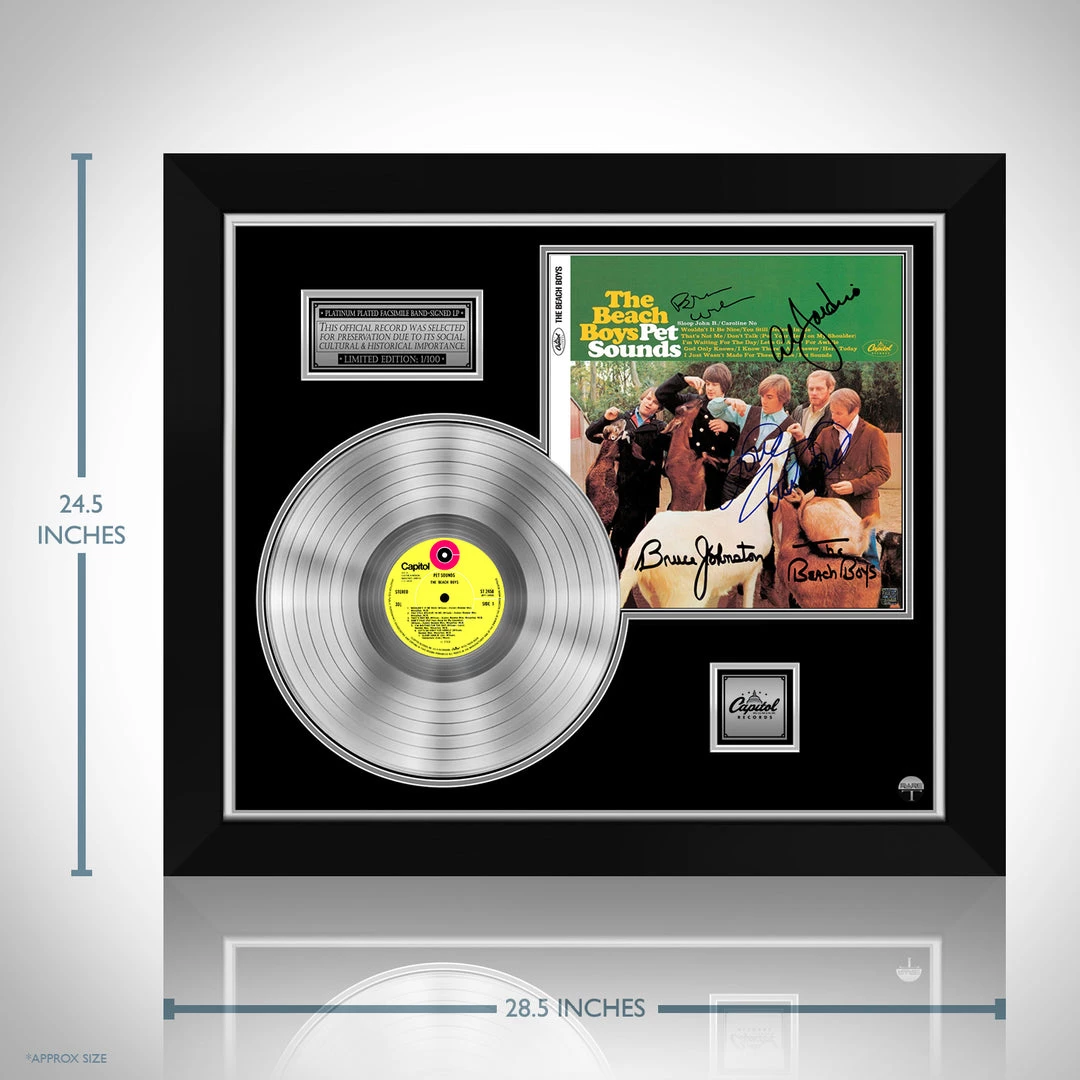 Pay homage to one of the most iconic American rock band of all time The Beach Boys , with this gallery-framed, authentic Capitol Records fully licensed facsimile of the official Hand-Signed Platinum Plated LP Record and LP Cover Pet Sounds Originally signed by Beach boys, Al Jardine , Bruce Johnston, Mike Love & Brian Wilson , of which is strictly limited to 100 units Worldwide and has been approved and numbered accordingly.
