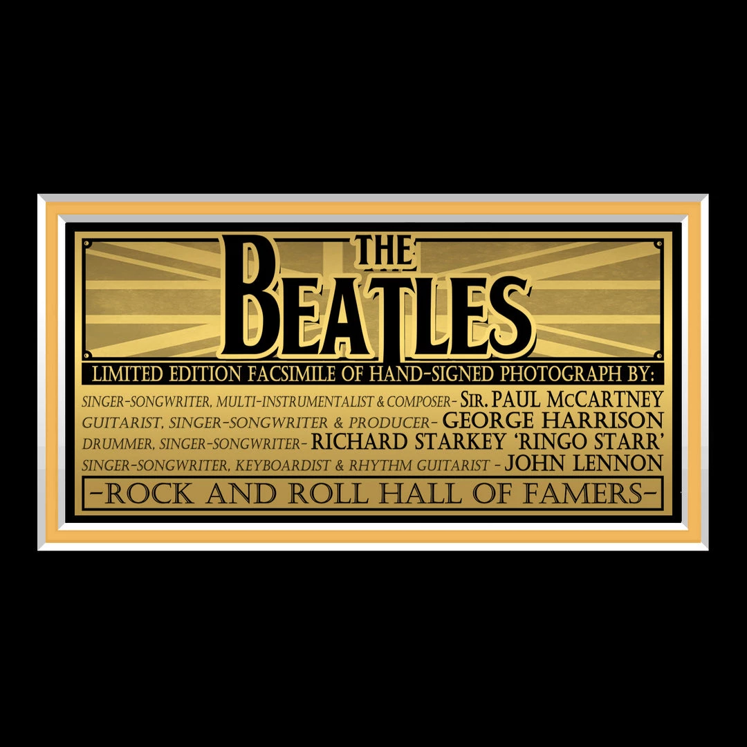 Pay homage to The Beatles with this gallery-framed, officially licensed, limited edition facsimile of hand-signed promo photo, originally signed by Paul McCartney, Ringo Starr, John Lennon & George Harrison, of which is strictly limited to 100 units Worldwide, and has been approved and numbered accordingly.