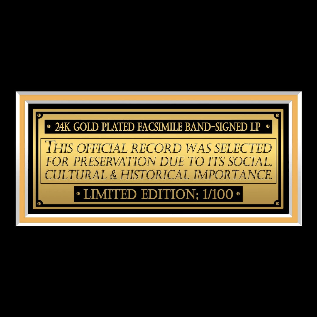 The 24K Gold Plated LP and album cover facsimile are both professionally mounted in the highest quality triple matted wood shadow box frame with metallic fillet trim and finished with protective glass to keep it looking pristine. The customized descriptive metallic plaque, in addition to the detailed finishing and openings, add to the elegant and sophisticated gallery quality look.