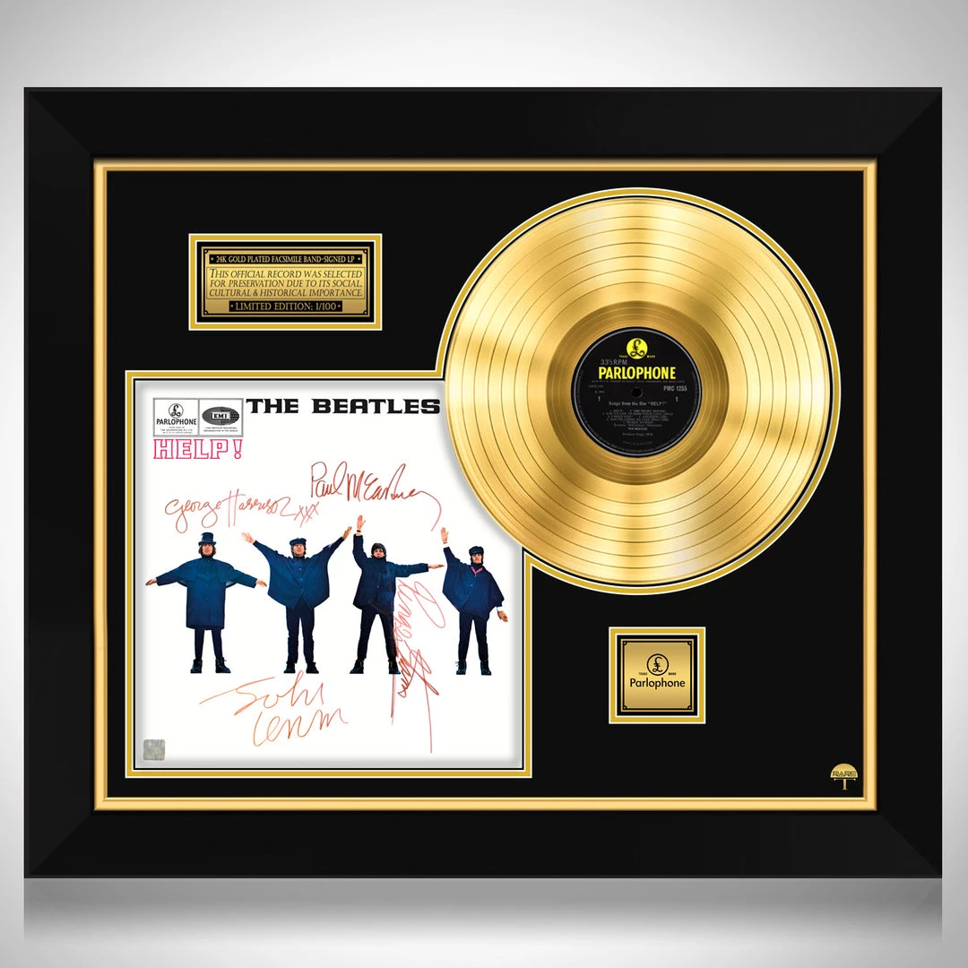 Æ’?? Collectible The Beatles Help facsimile of hand-signed 24k Gold Plated LP Custom Frame