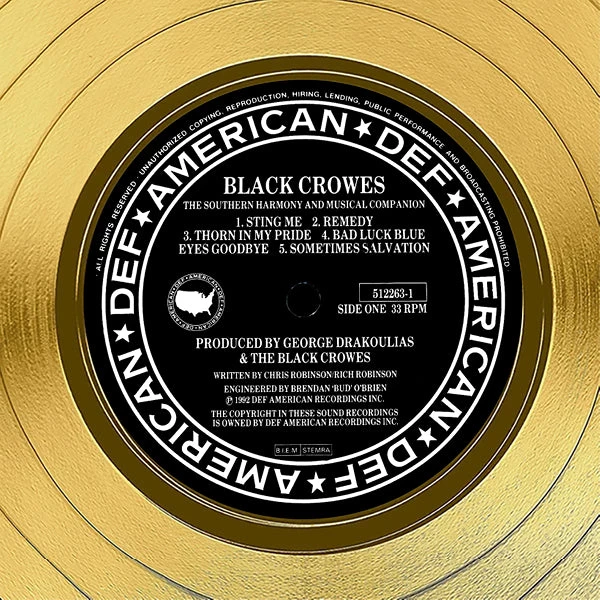 Pay homage to one of the most iconic American rock band of all time The Black Crowes , with this gallery-framed, authentic Def American Recordings fully licensed facsimile of the official Hand-Signed 24K Gold LP Record and LP Cover The Southern Harmony and Musical Companion Originally signed by Chris Robinson, Rich Robinson, Marc Ford, Johnny Colt, Steve Gorman & Eddie Harsch , of which is strictly limited to 100 units Worldwide and has been approved and numbered accordingly.