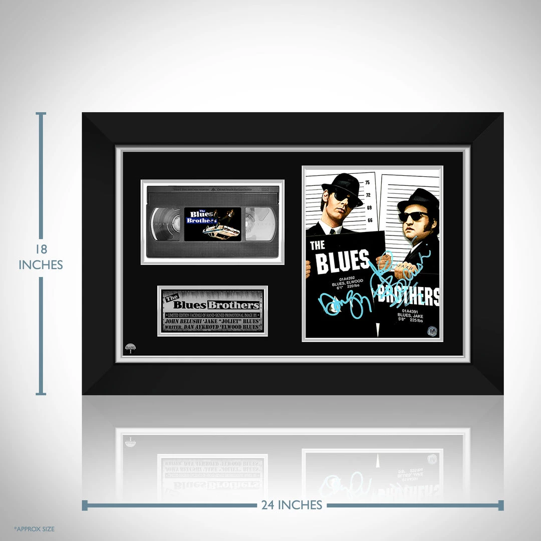 Pay homage to The Blues Brothers, with this gallery-framed, officially licensed, limited edition facsimile of hand-signed movie photo & VHS , originally signed by Dan Aykroyd and John Belushi, of which is strictly limited to 100 units Worldwide, and has been approved and numbered accordingly.
