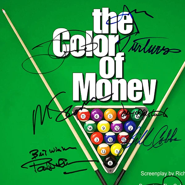 Pay homage to The Color of Money , with this Touchstone Pictures fully licensed facsimile of the official signed movie Transcript , originally signed by actors Martin Scorsese, Paul Newman, Tom Cruise, Mary Elizabeth Mastrantonio, Helen Shaver, John Turturro, Bill cobbs, Iggy Pop & Forest Whitaker , of which is strictly limited to 100 units Worldwide and has been approved and numbered accordingly.