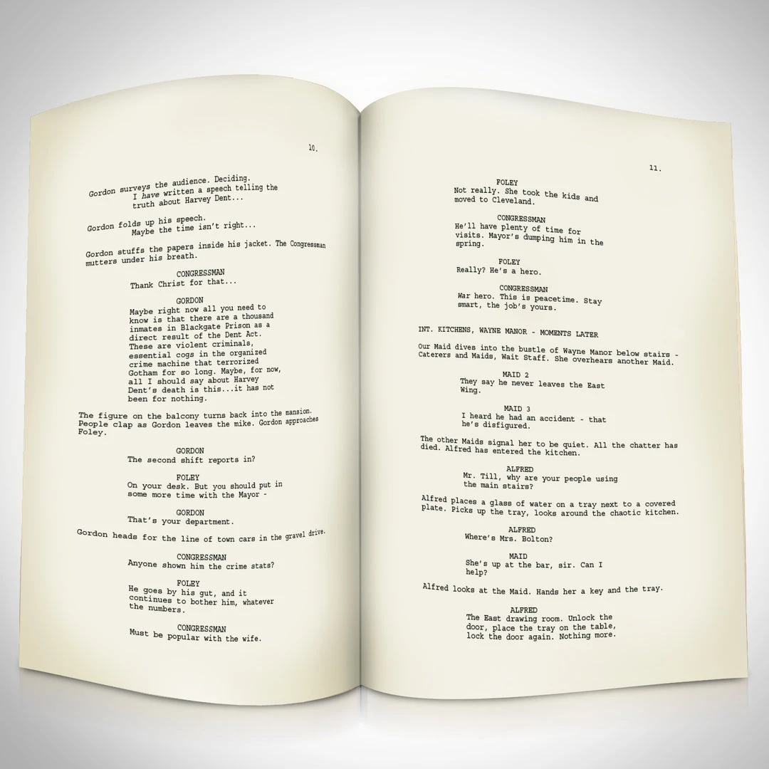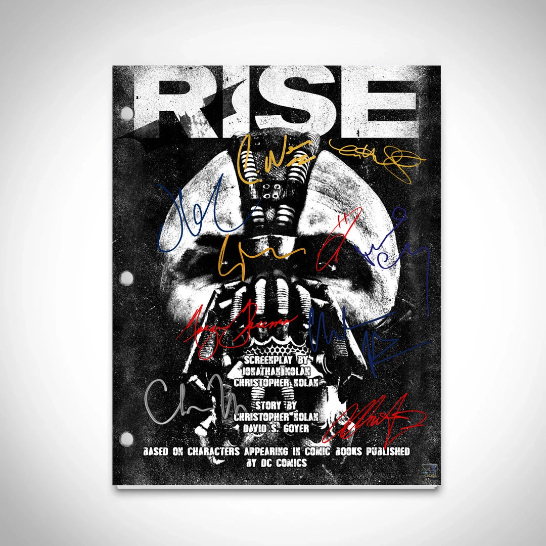 Pay homage to Dark Knight Rises , with this Warner Bros. fully licensed facsimile of the official signed movie script, originally signed by actors Christopher Nolan, Christian Bale, Gary Oldman, Tom Hardy, Joseph Gordon-Levitt, Anne Hathaway, Morgan Freeman, Michael Caine, Liam Neeson, Cillian Murphy , of which is strictly limited to 100 units Worldwide and has been approved and numbered accordingly.