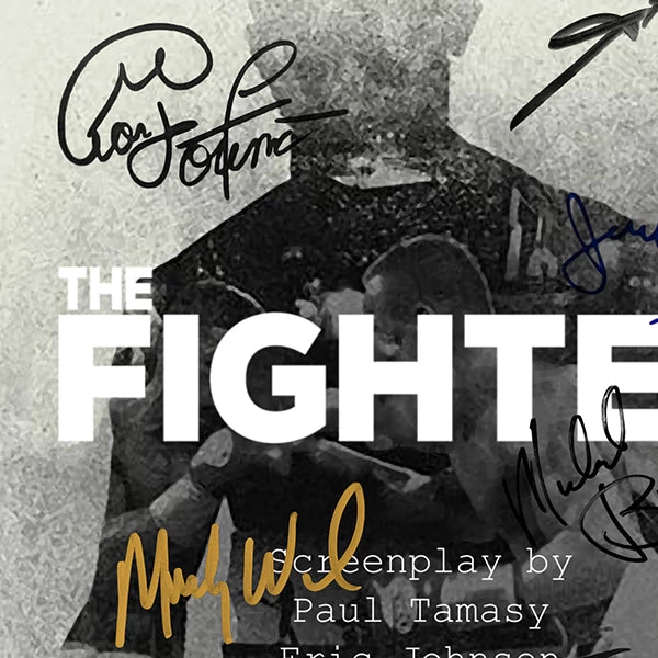 Pay homage to The Fighter , with this Paramount Pictures fully licensed facsimile of the official signed movie script, originally signed by actors Mark Wahlberg, Christian Bale, Amy Adams, Jack McGee, Sugar Ray Leonard, Michael Buffer, Larry Merchant, Roy Jones Jr., George Foreman & Micky Ward , of which is strictly limited to 100 units Worldwide and has been approved and numbered accordingly.