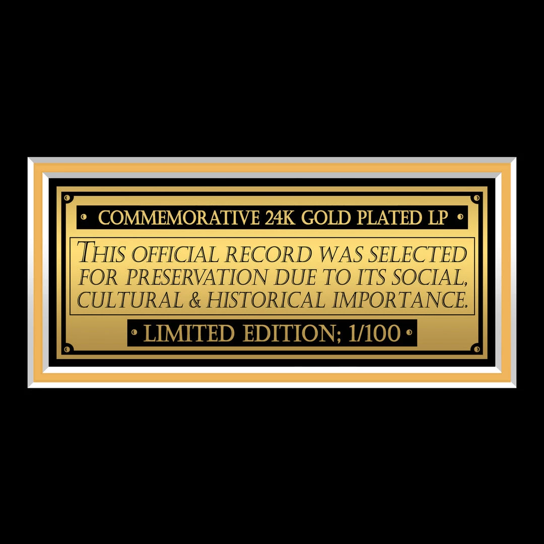 The 24K Gold Plated LP and Album Cover Photo are both professionally mounted in the highest quality triple matted wood shadow box frame with metallic fillet trim and finished with protective glass to keep it looking pristine. The customized descriptive metallic plaque, in addition to the detailed finishing and openings, add to the elegant and sophisticated gallery quality look.