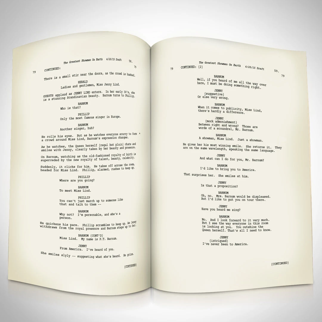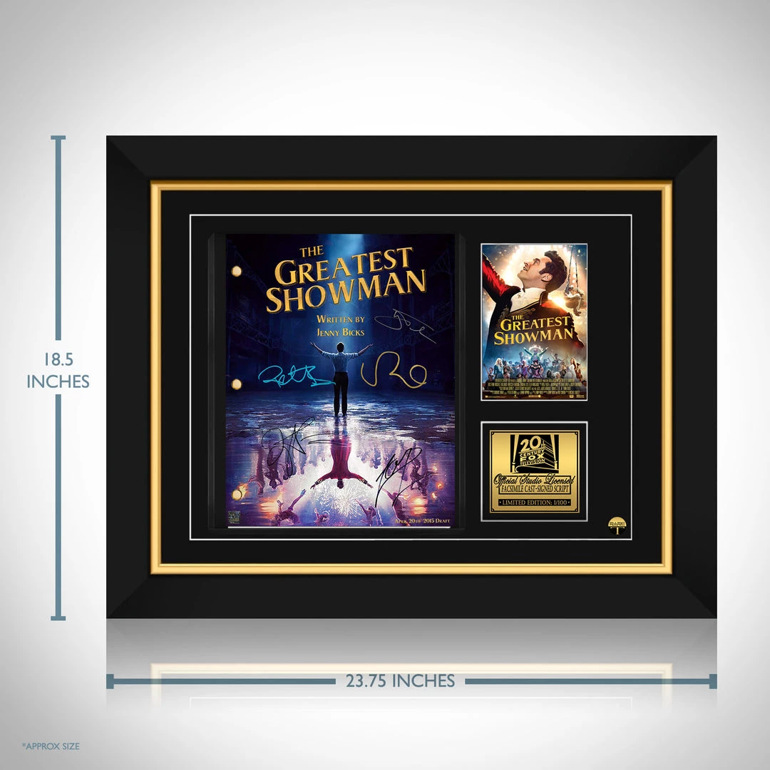 Pay homage to The Greatest Showman , with this 20th Century Fox fully licensed facsimile of the official signed movie script, originally signed by actors Hugh Jackman, Zac Efron, Michelle Williams, Rebecca Ferguson & Zendaya , of which is strictly limited to 100 units Worldwide and has been approved and numbered accordingly.