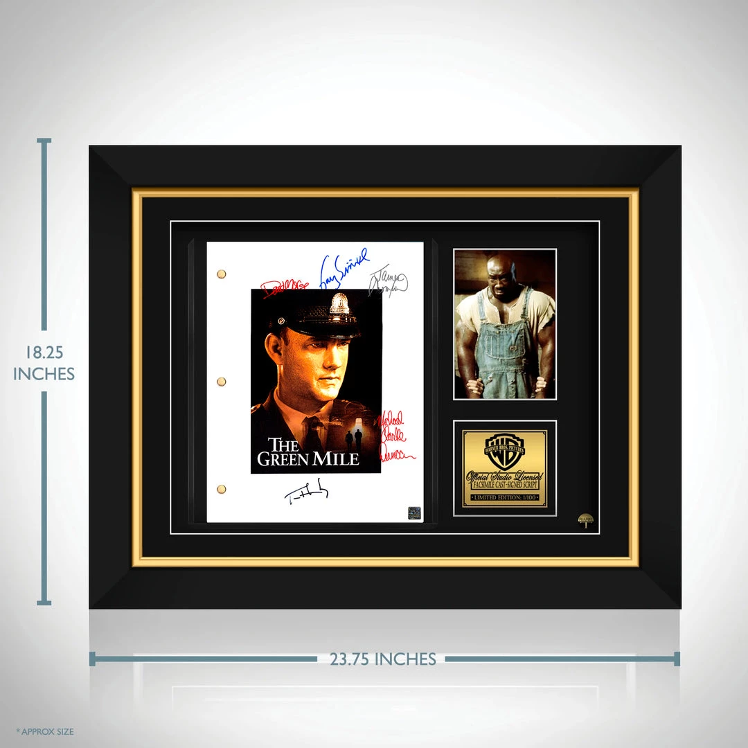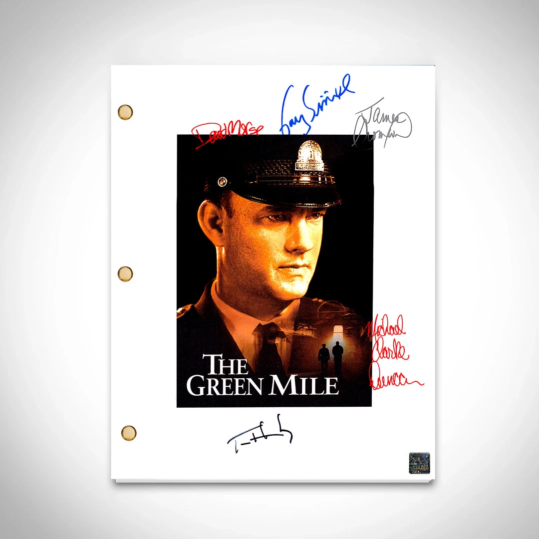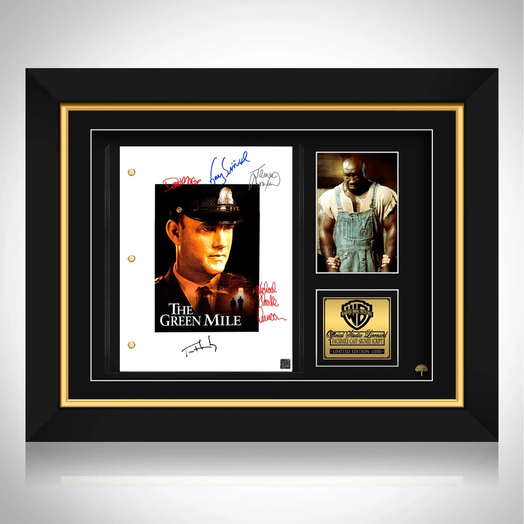 Pay homage to The Green Mile , with this Warner Bros. Pictures  fully licensed facsimile of the official signed movie script, originally signed by actors Michael Clark Duncan, Gary Sinise, David Morse, James Cromwell and Tom Hanks , of which is strictly limited to 100 units Worldwide and has been approved and numbered accordingly.