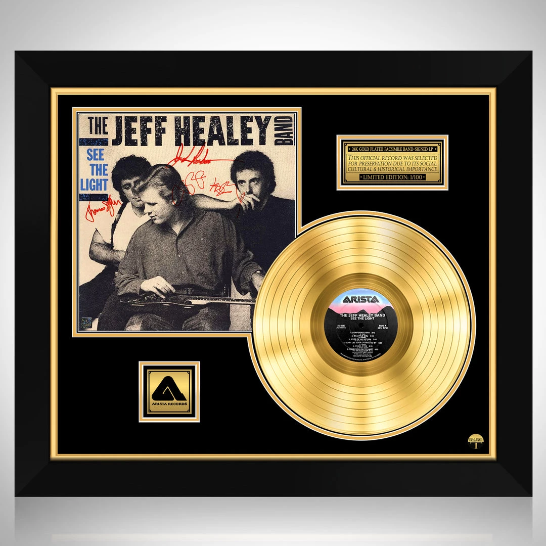Pay homage to one of the most iconic Canadian jazz and blues-rock band of all time The Jeff Healey Band , with this gallery-framed, authentic Arista Records fully licensed facsimile of the official Hand-Signed 24K Gold LP Record and LP Cover See the light Originally signed by Jeff Healey the bassist, Joe Rockman and drummer Tom Stephen , of which is strictly limited to 100 units Worldwide and has been approved and numbered accordingly.