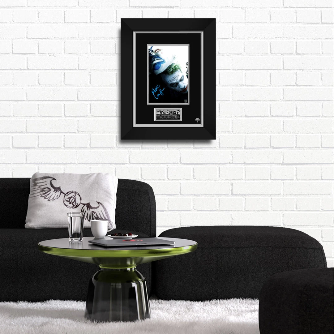 WHY SO SERIOUS??? Pay homage to The Joker and the legendary Heath Ledger from the Batman franchise movie The Dark Knight, with this gallery-framed, officially licensed, limited edition facsimile of hand-signed movie photo, originally signed by actor & music video director, the late, great Heath Ledger, of which is strictly limited to 100 units Worldwide, and has been approved and numbered accordingly.