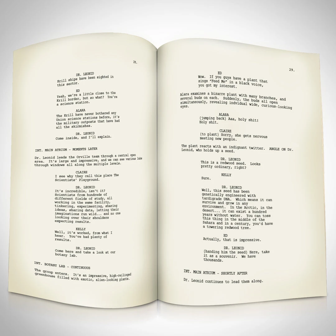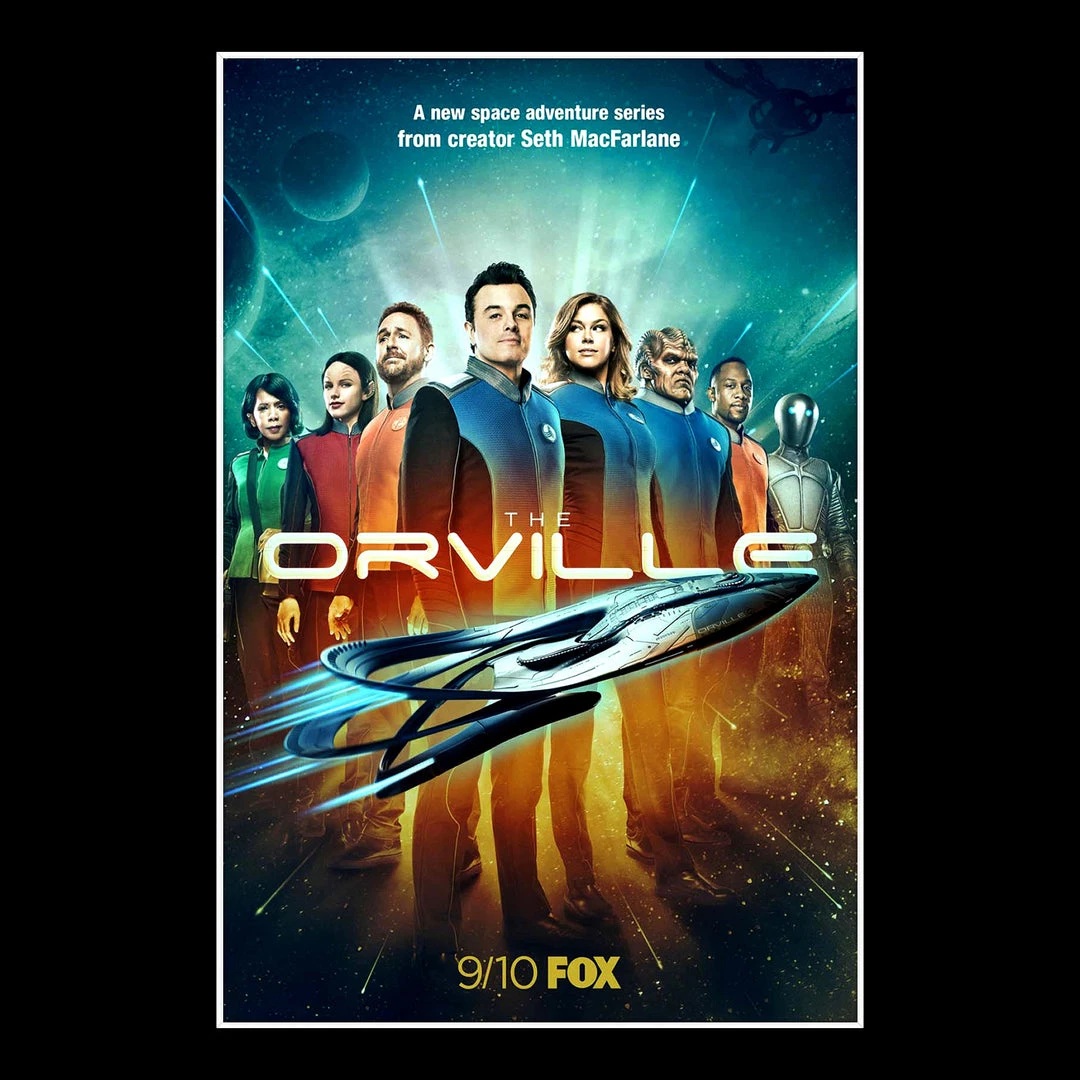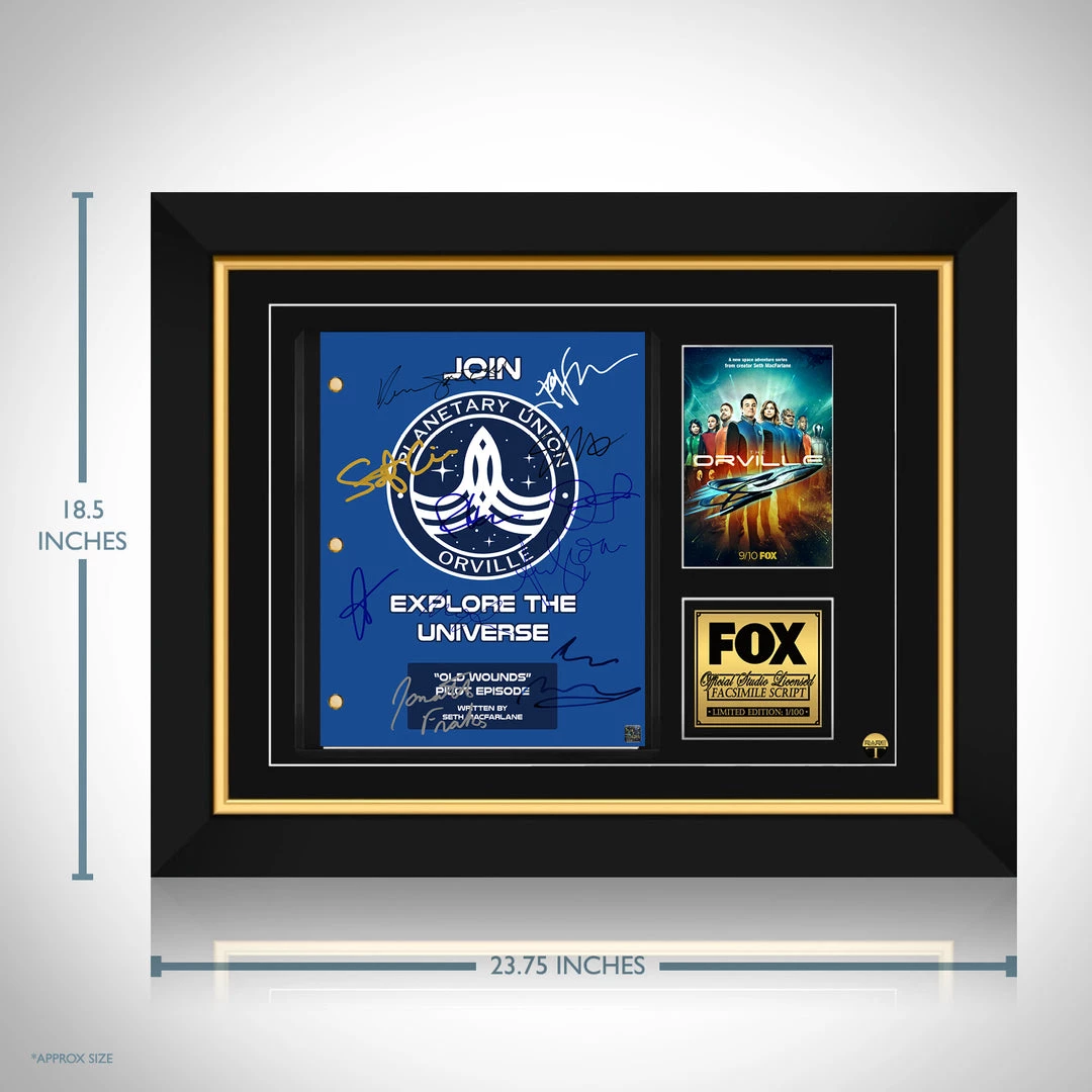 Pay homage to The Orville , with this Fox fully licensed facsimile of the official signed TV Series script, originally signed by actors Seth McFarlane, Jon Favreau, Jonathan Frakes, Adrianne Palicki, Penny Johnson Jerald, Scott Grimes, Peter Macon, J.Lee, Mark Jackson, Norm MacDonald & Jessica Szohr , of which is strictly limited to 100 units Worldwide and has been approved and numbered accordingly.
