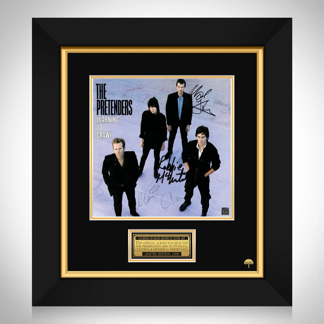 Pay homage to one of the most iconic British–American rock band of all time, The Pretenders , with this gallery-framed, officially licensed, limited edition facsimile of the Hand-Signed Learning to Crawl LP Cover originally signed by Chrissie Hynde, Martin Chambers, Robbie McIntosh & Malcolm Foster , of which is strictly limited to 100 units Worldwide, and has been approved and numbered accordingly.