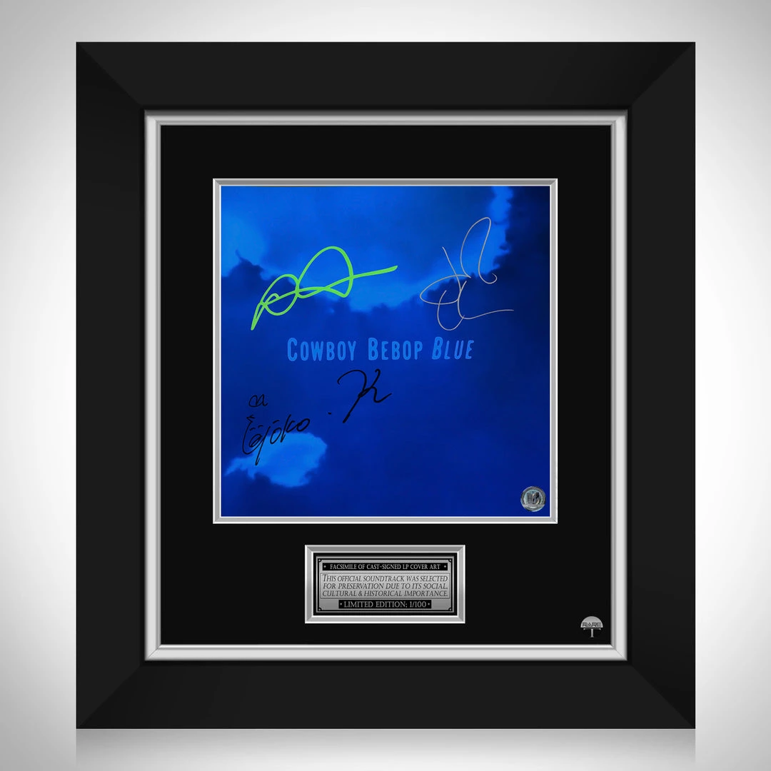 Pay homage to one of the most iconic Japanese band of all time, The Seatbelts , with this gallery-framed, officially licensed, limited edition facsimile of the Hand-Signed Cowboy Bebop Blue LP Cover originally signed by Yoko Kanno, John Cho & Daniella Pineda , of which is strictly limited to 100 units Worldwide, and has been approved and numbered accordingly.