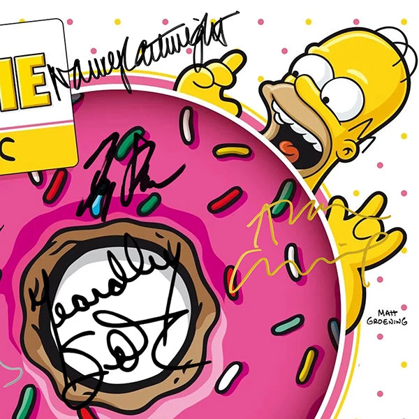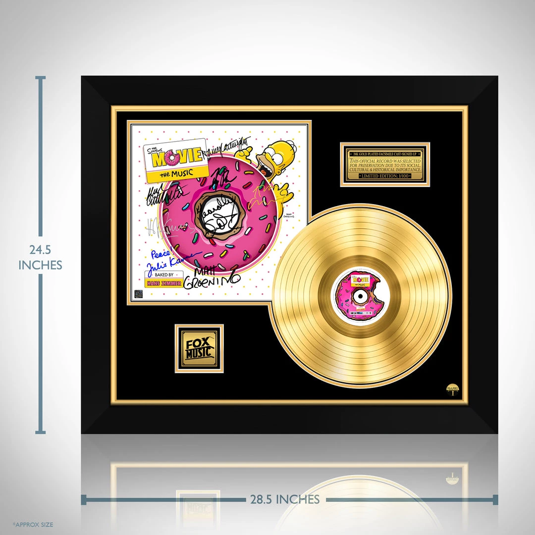 Pay homage to one of the most iconic movie of all time The Simpsons , with this gallery-framed, authentic Adrenaline Music Group fully licensed facsimile of the official Hand-Signed 24K Gold LP Record and LP Cover The Music Originally signed by Matt Groening, Dan Castellaneta, Julie Kavner, Nancy Cartwright, Yeardley Smith, Hank Azaria, Harry Shearer & Hans Zimmer , of which is strictly limited to 100 units Worldwide and has been approved and numbered accordingly.