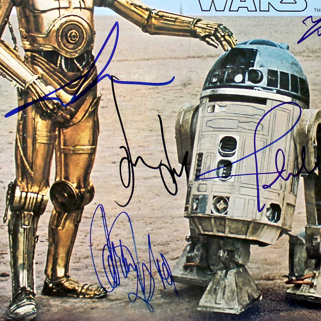 – Originally Signed by Harrison Ford, George Lucas, Mark Hamill, Carrie Fisher, Peter Mayhew & Kenny Baker .