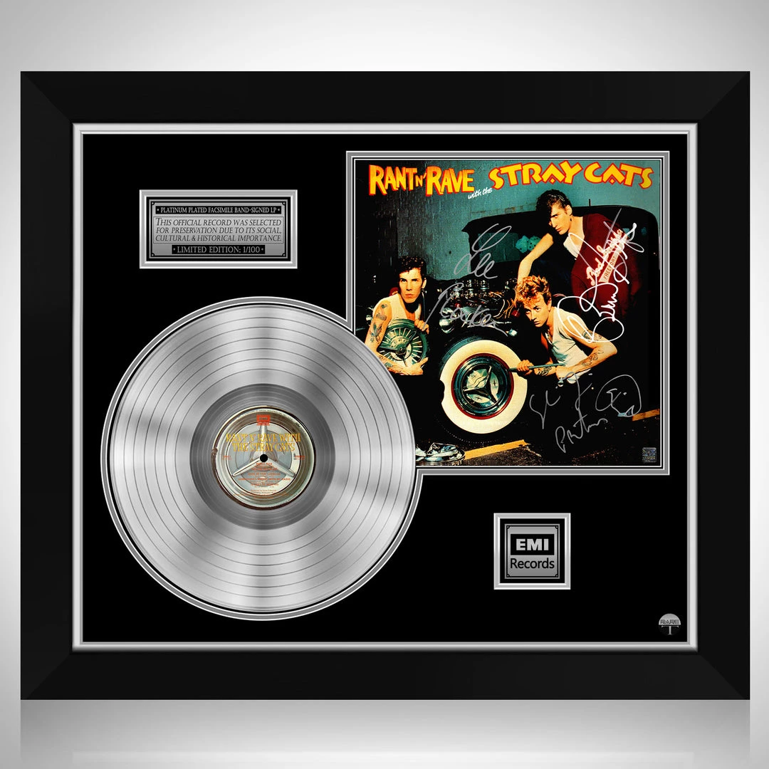 Pay homage to one of the most iconic American rockabilly band of all time The Stray Cats , with this gallery-framed, authentic EMI Records fully licensed facsimile of the official Hand-Signed Platinum Plated LP Record and LP Cover Rant N’ Rave Originally signed by Brian Setzer, Lee Rocker & Slim Jim Phantom , of which is strictly limited to 100 units Worldwide and has been approved and numbered accordingly.