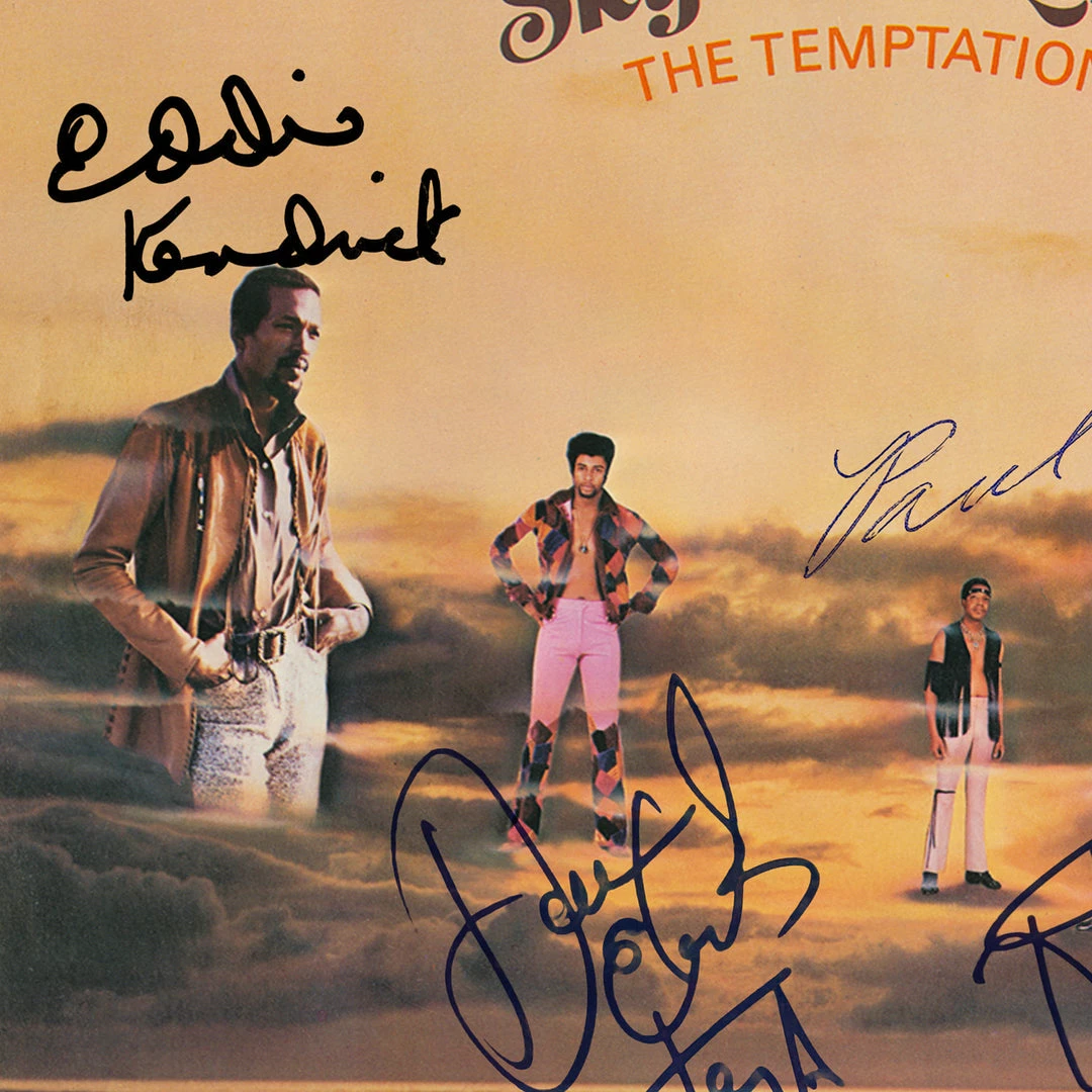 Pay homage to one of the most iconic band of all time The Temptations , with this gallery-framed, authentic Gordy Records fully licensed facsimile of the official Hand-Signed Platinum Plated LP Record and LP Cover Sky’s the Limit Originally signed by Dennis Edwards, Otis Williams, Paul Williams, Melvin Franklin & Eddie Kendricks , of which is strictly limited to 100 units Worldwide and has been approved and numbered accordingly.