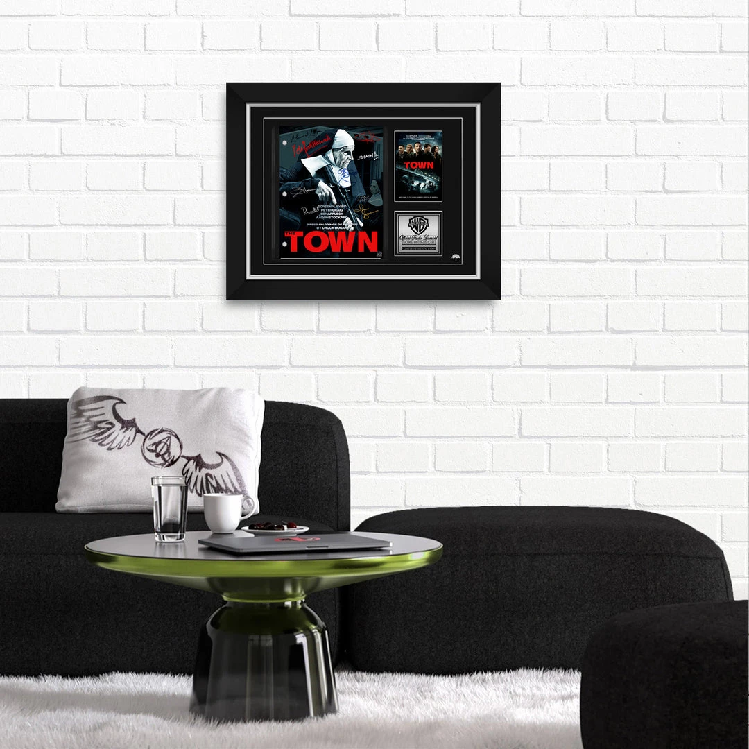 — Collector Grade Proprietary Exclusive VELVET TOUCH water/scratch resistant cover.— Collectible Facsimile of Original Hand-Signed The Town movie Script Custom Frame.