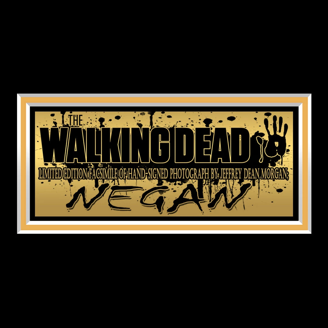 Pay homage to Negan, with this gallery-framed, officially licensed, limited edition facsimile of hand-signed photo, originally signed by Jeffrey Dean Morgan, of which is strictly limited to 100 units Worldwide, and has been approved and numbered accordingly.