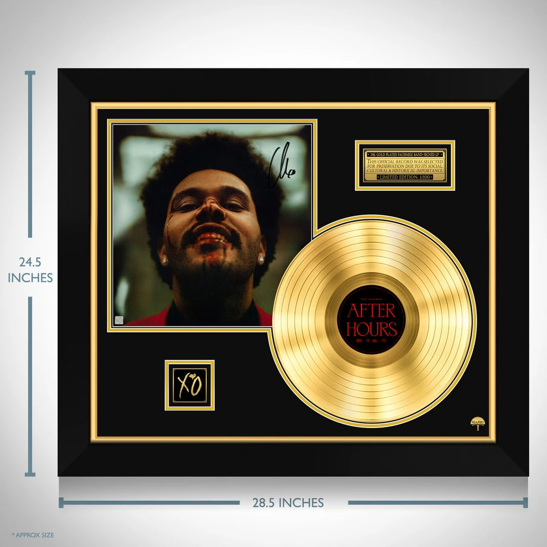 Pay homage to one of the most successful Canadian musical artists of all time The Weeknd, with this gallery-framed, authentic, XO Records fully licensed facsimile of hand-signed After Hours 24k Gold Plated LP Record and LP Cover, originally signed by singer-songwriter, actor and record producer The Weeknd, of which is strictly limited to 100 units Worldwide, and has been approved and numbered accordingly.