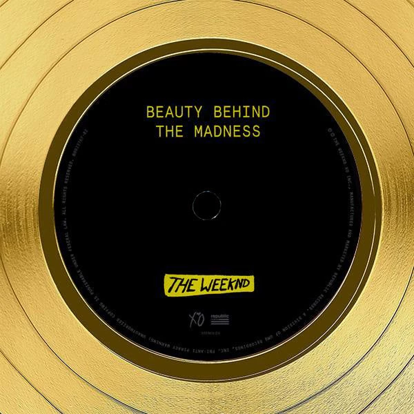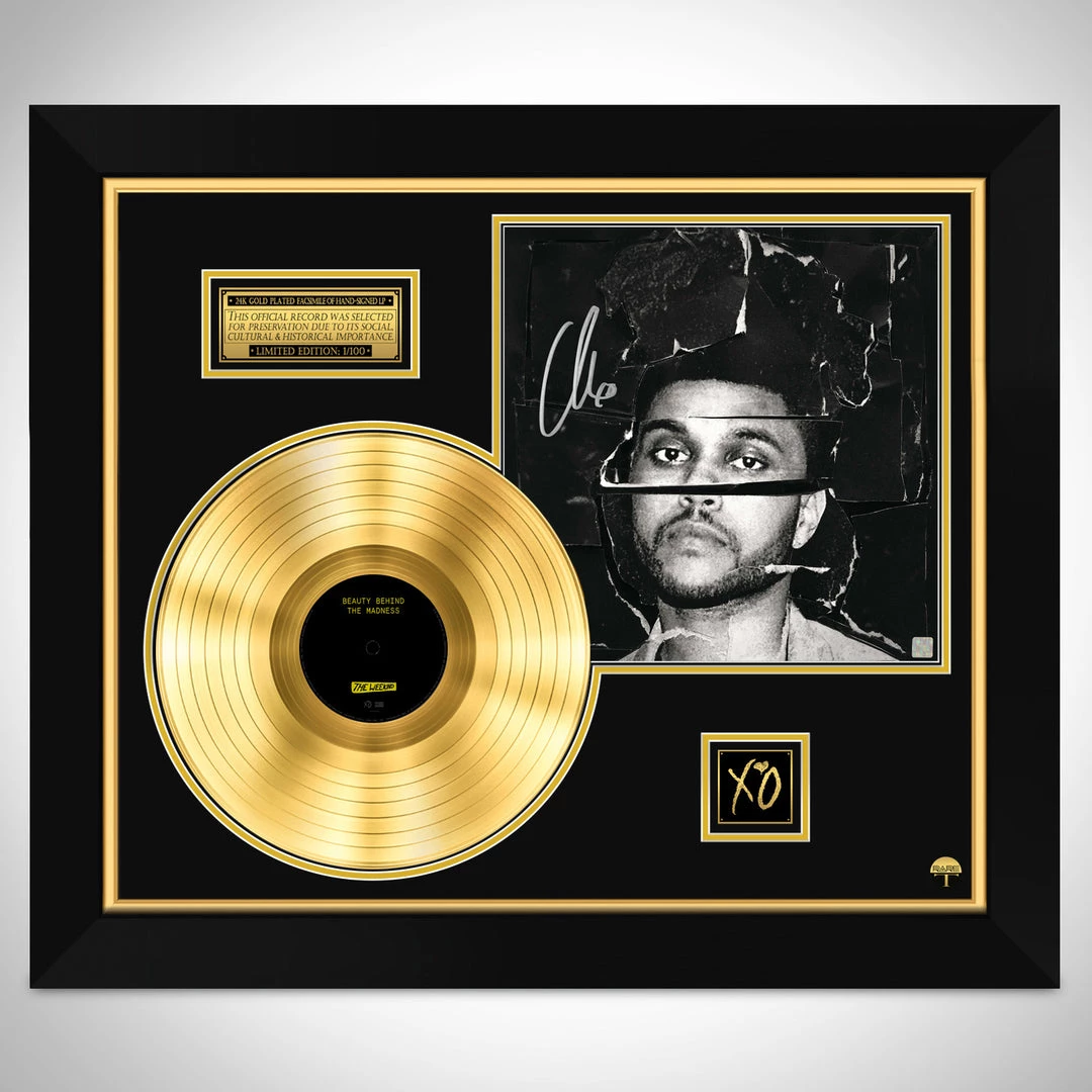 ฦ?? Collectible The Weeknd Beauty Behind the Madness facsimile of hand-signed 24K Gold Plated LP Custom Frame