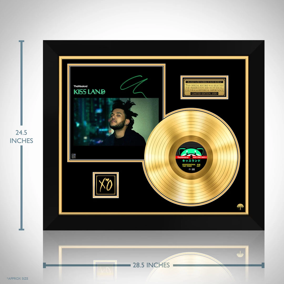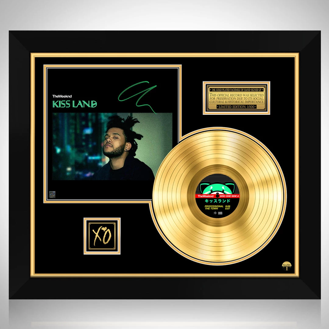 Pay homage to one of the most iconic Canadian musical artists of all time The Weeknd , with this gallery-framed, authentic XO Records fully licensed facsimile of the official Hand-Signed 24K Gold LP Record and LP Cover Kiss Land Originally signed by Abel Makkonen Tesfaye “The Weeknd” , of which is strictly limited to 100 units Worldwide and has been approved and numbered accordingly.